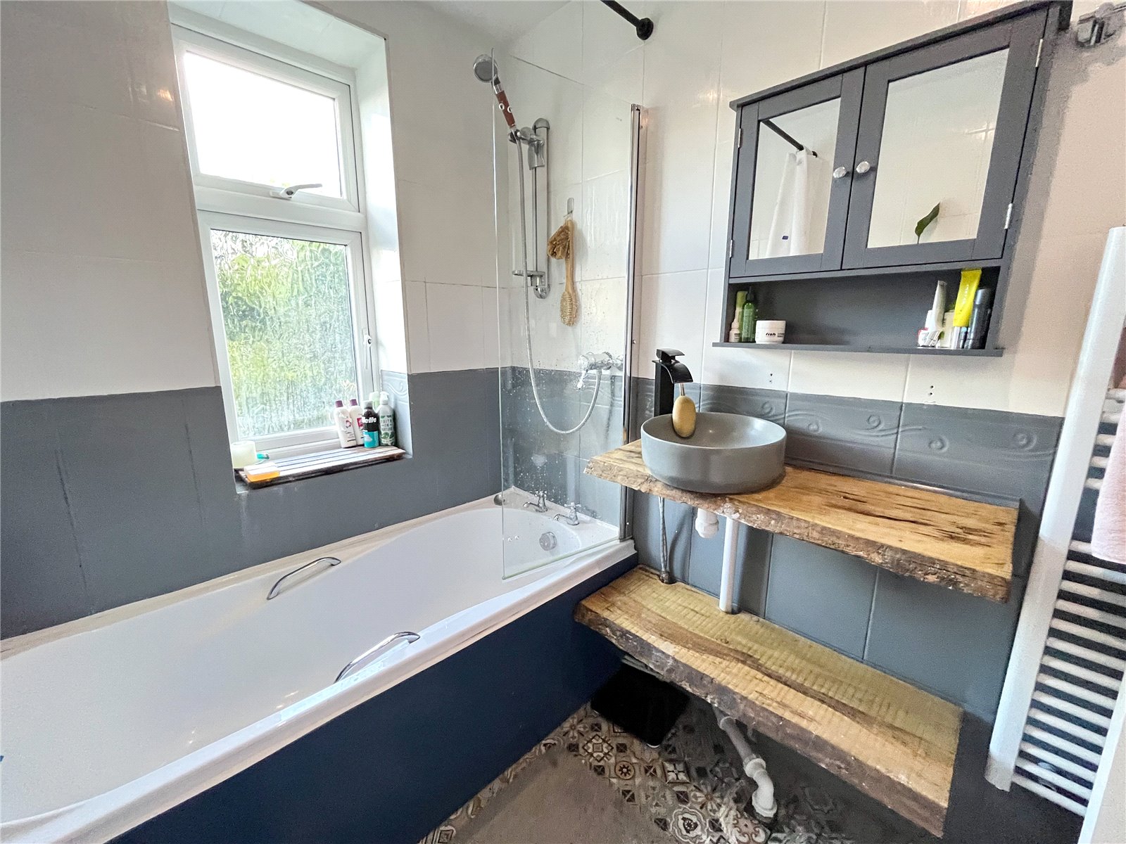 The house exudes a stylish charm throughout, with the ground floor consisting of a living room with a woodburner ideal for winter evenings, an open plan modern kitchen/diner with a woodburner and bifold doors leading onto the conservatory/utility area. Situated off this is a downstairs shower room.