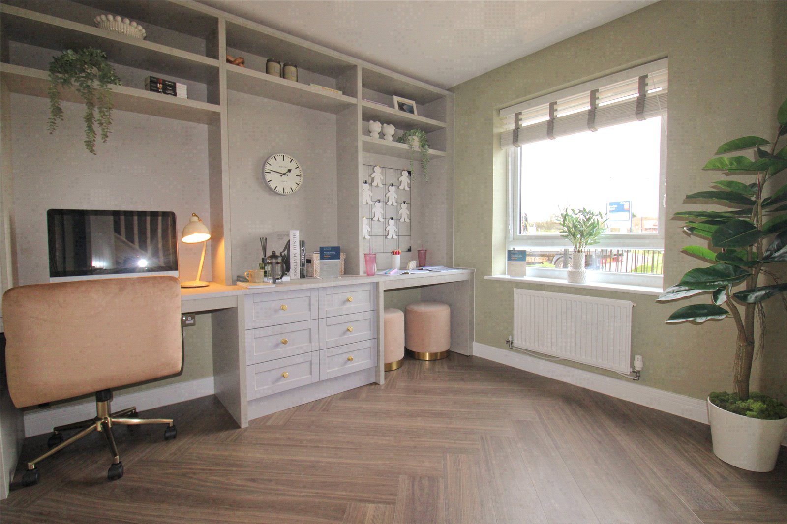 With four double bedrooms, two ensuites and a useful separate office, The Goldsmith is a fabulous detached home. Flooded with natural light and featuring a wonderful, full width kitchen-diner, this stylish home is built with efficiency in mind complete with solar panels and EV charger.