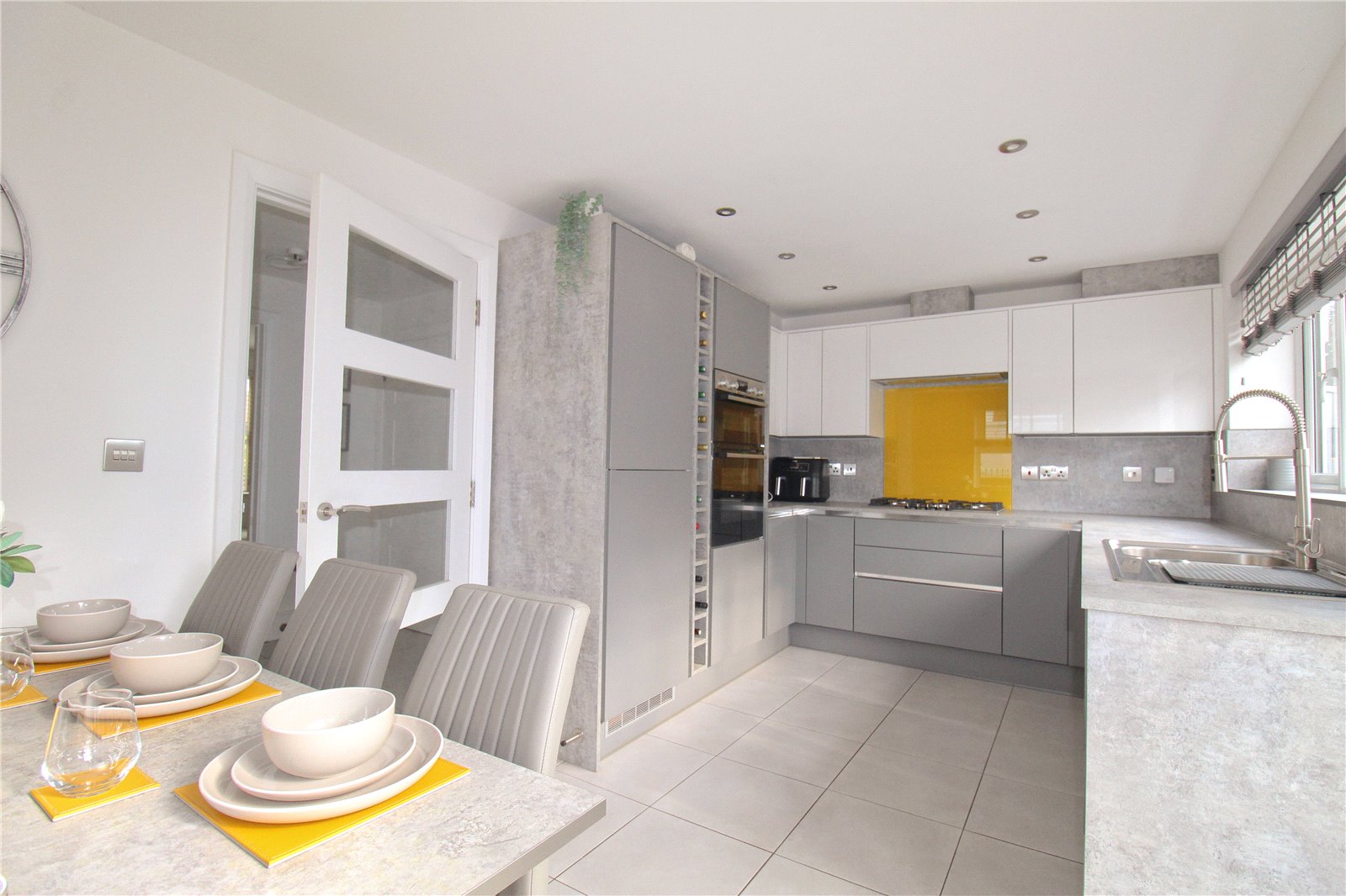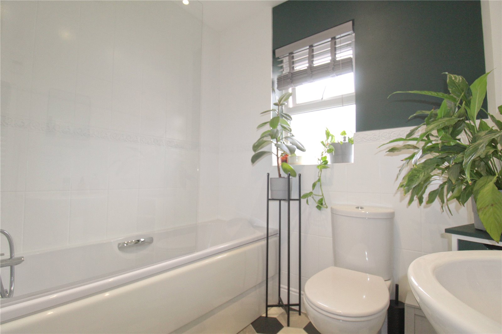 Stepping into the property, the hallway has doors to the living room, kitchen-diner and cloakroom as well as stairs to the first floor. The dual aspect living room is a great size that is flooded with natural light and has plenty of room for furnishings. Fitted with a selection of modern units and work surface space, the kitchen-diner is a lovely room with French doors to the garden making it a perfect social area. Completing the downstairs space the cloakroom has a wash basin and WC.