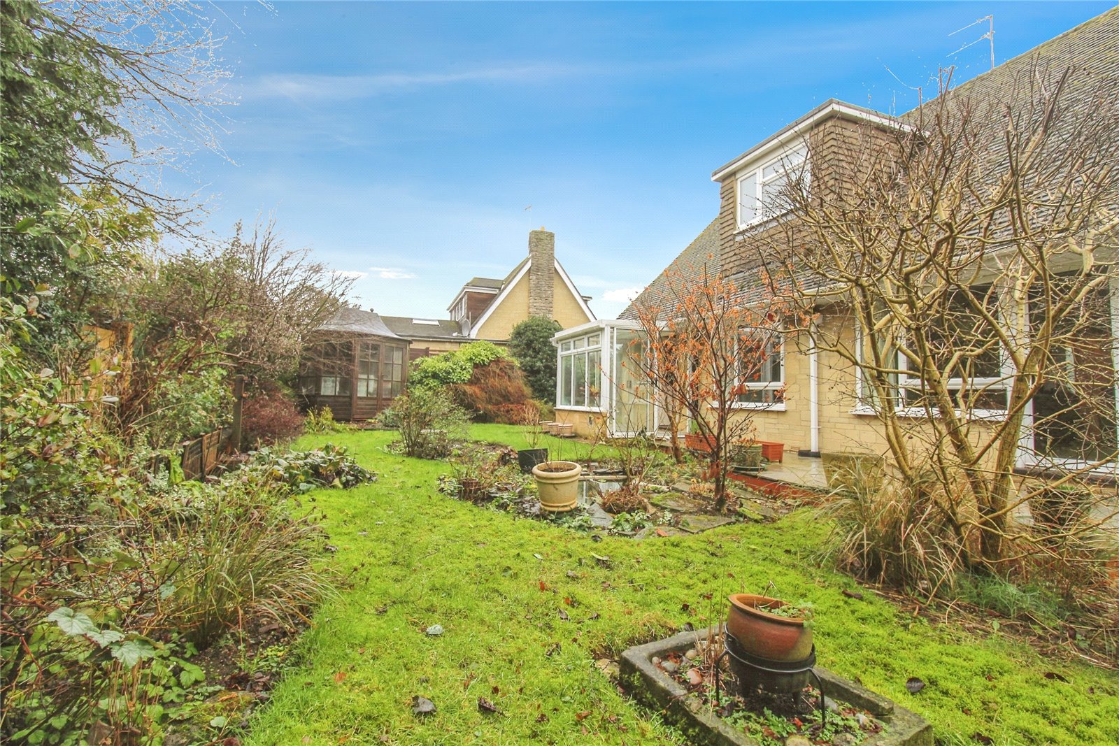 To the front of the property there is a lovely front garden that is laid to lawn with a selection of attractive shrubs and plants. There is also a good amount of driveway parking that leads to the garage as well as side access to the rear garden. The private rear garden is a good size and mostly laid to lawn with attractive flower beds that add to the beauty of the garden.