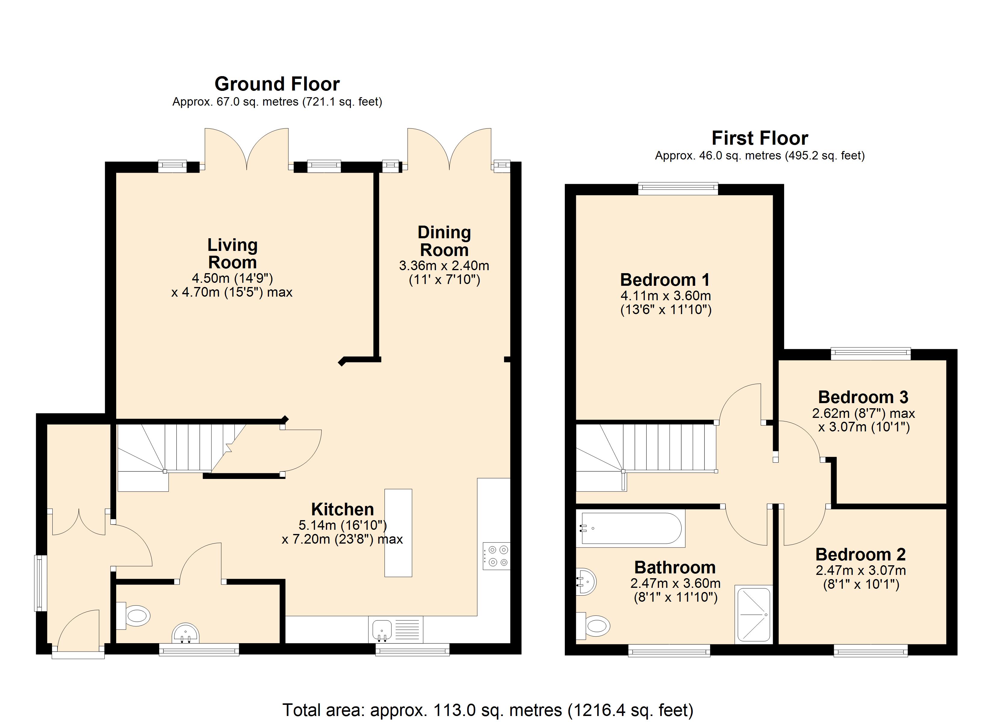 Stepping into the property, the porch provides as useful separation from the living accommodation with doors to the kitchen and storage cupboard. Fitted with a selection of modern units and work surface space, the kitchen is an amazing social area with a breakfast bar. From the kitchen there are also openings to the dining room and living room as well as stairs to the first floor and a door to the cloakroom. The dining room is a good space with plenty of room for a dining table as well as French doors that open out to the garden. The living room is another amazing room with French doors that open out to the garden making it a great spot to relax in the summer. Completing the downstairs space is the cloakroom which has a WC and wash basin as well as plumbing for appliances.