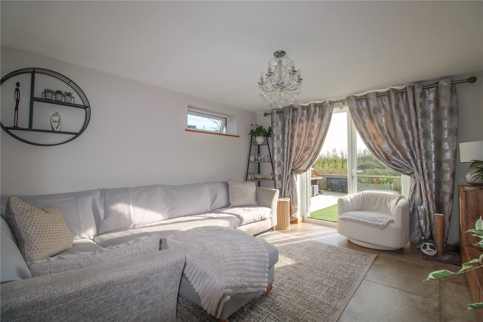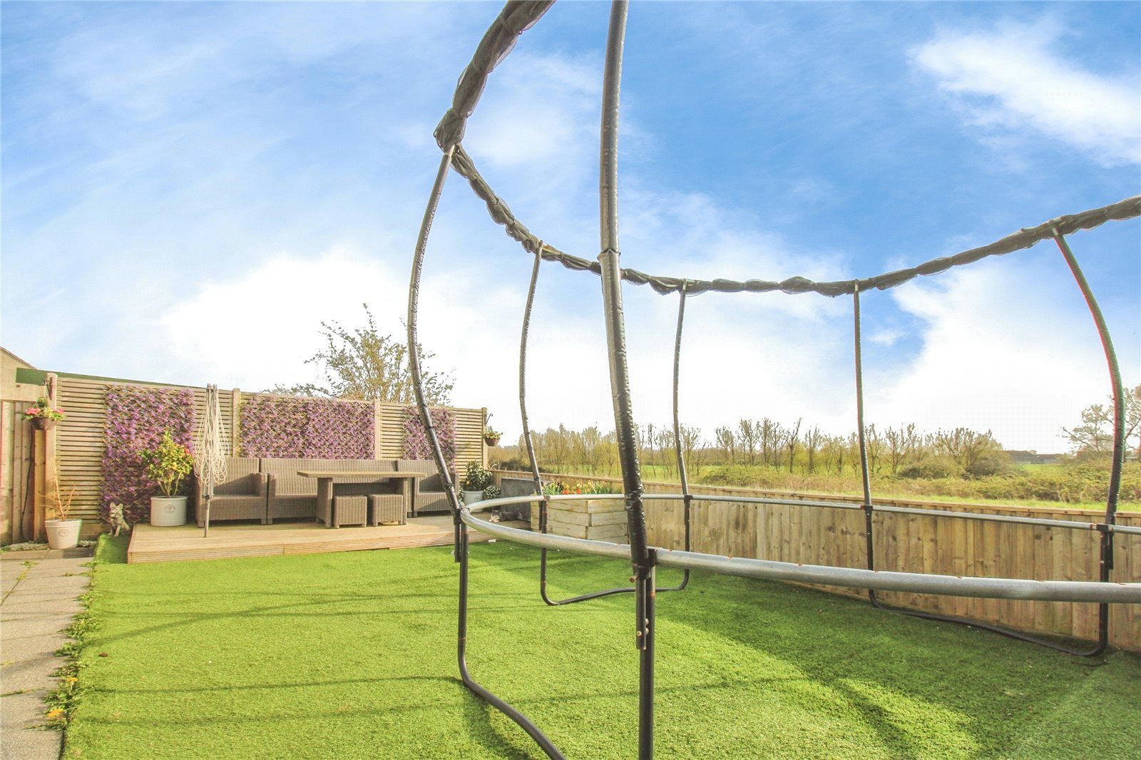 To the front of the property there is driveway parking which is accessed via a shared driveway as well as a side gate that leads to the garden. The private rear garden is low maintenance with a blend of artificial lawn and decking. The garden backs onto fields, offering great views and a peaceful and tranquil atmosphere whilst being south-west facing.