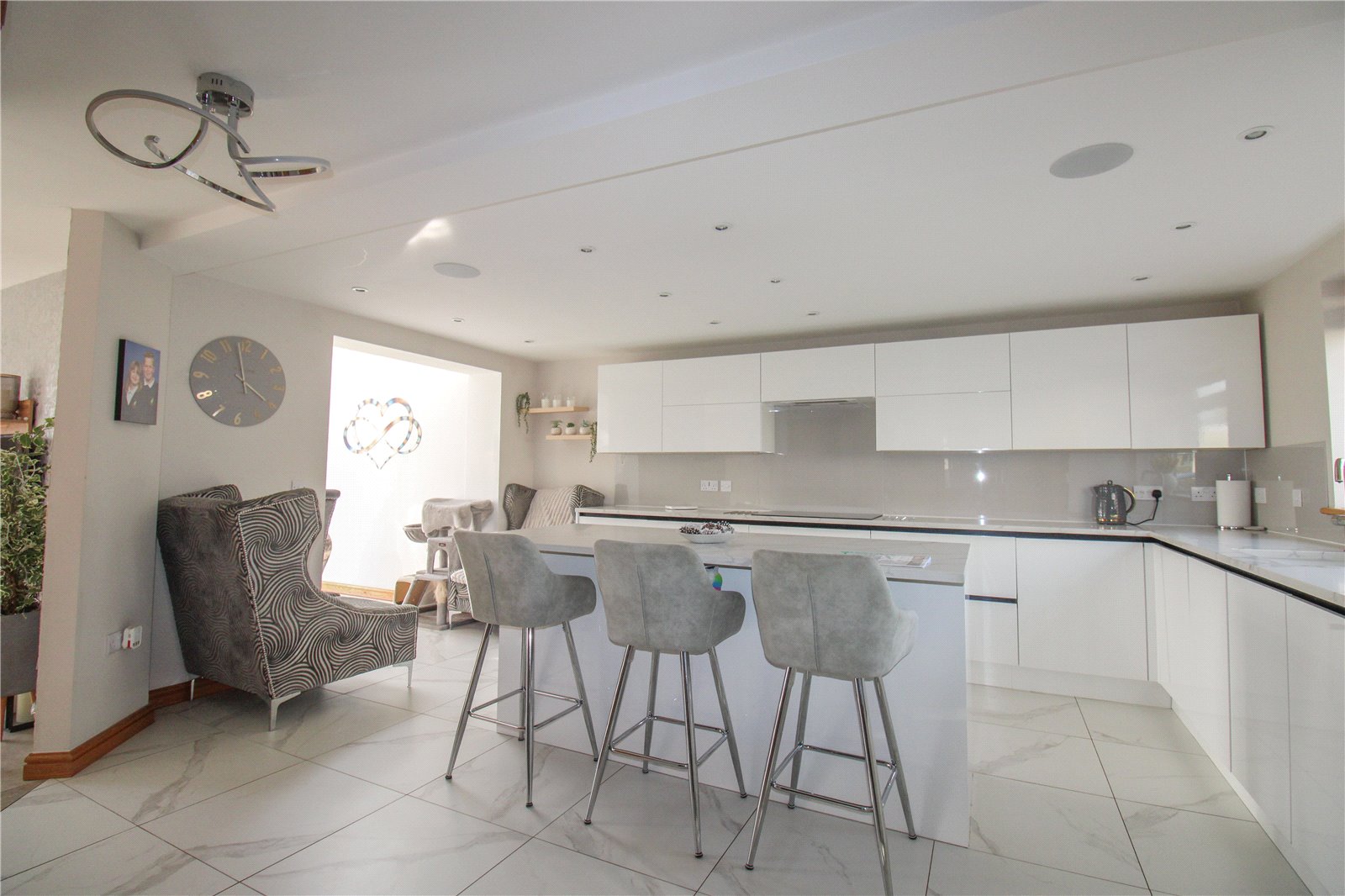 - THREE BEDROOMS STYLISH AND MODERN DECOR SITUATED AT THE END OF A CUL DE SAC LOW MAINTINENCE REAR GARDEN, SOUTH WEST FACING STUNNING VIEWS DOWNSTAIRS CLOAKROOM OPEN PLAN SOCIAL LIVING SPACE...