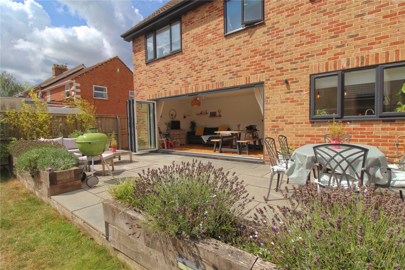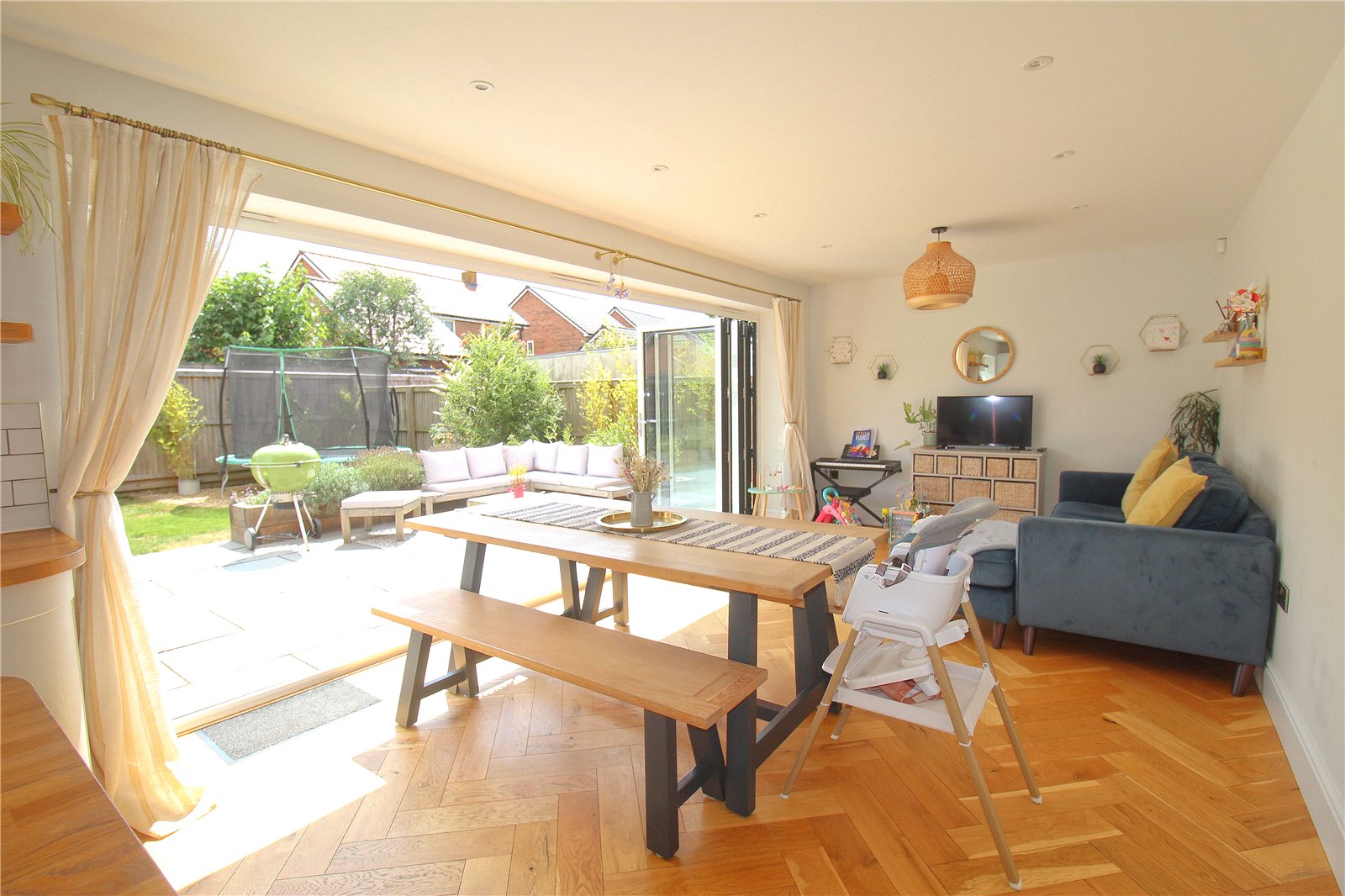 Finished to a wonderful standard, this spacious detached home features stunning entertaining space with bi-fold doors, a home office and five double bedrooms. The driveway parking leads to the garage and double car port whilst to the rear you find a fabulous garden.