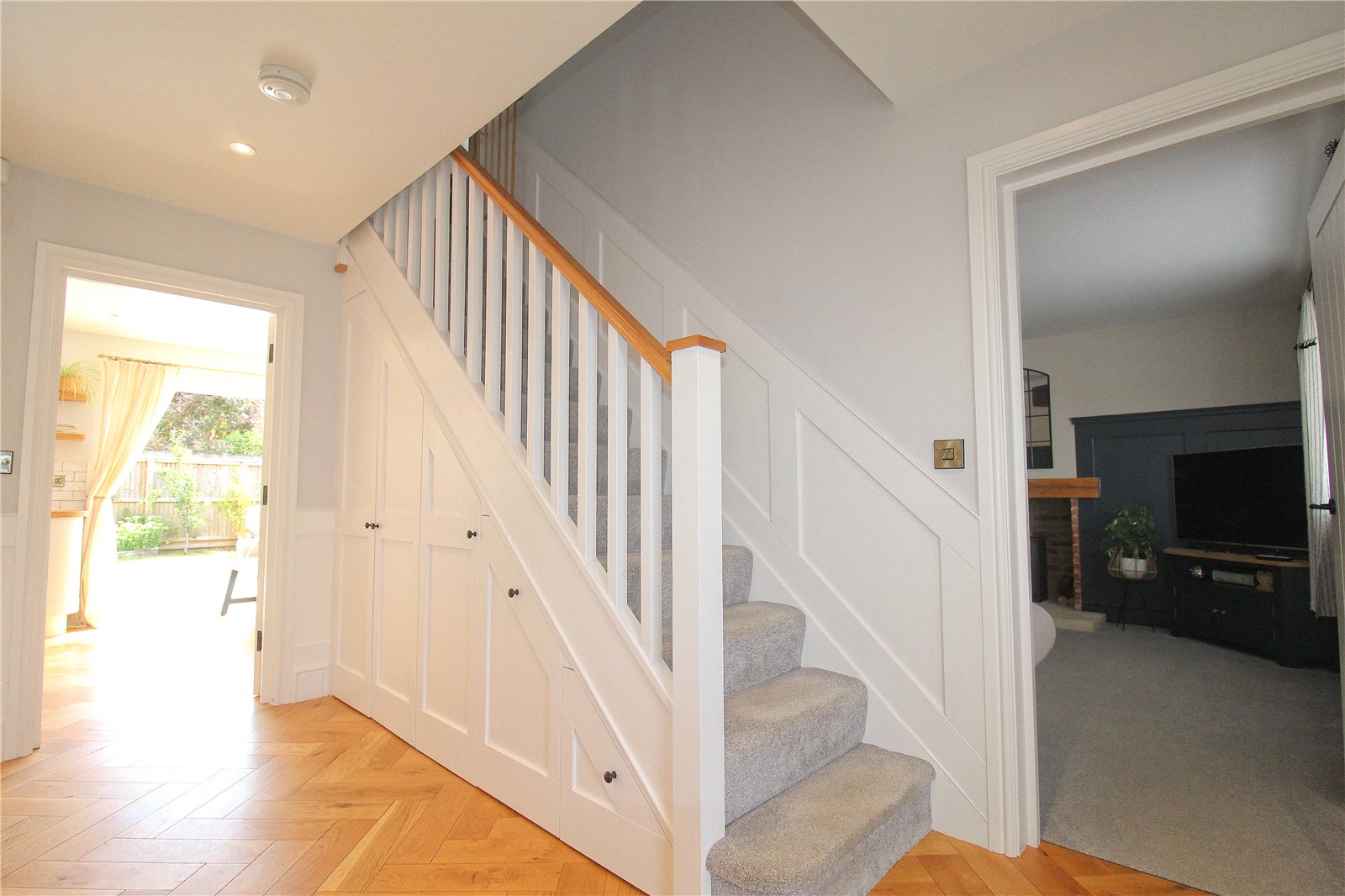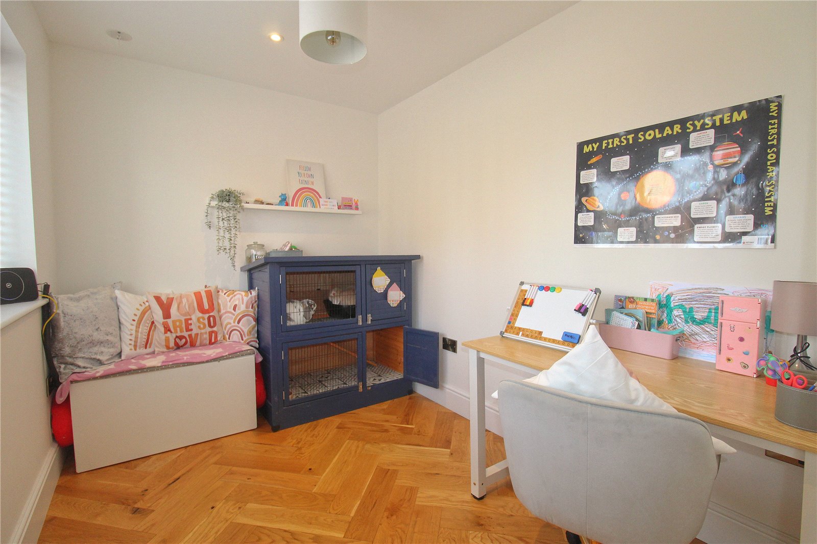 Stepping into the property, you are met with beautiful wooden flooring laid in a stylish herring bone pattern which continues through most of the ground floor. Stairs lead to the first floor with a fantastic amount of under stairs storage whilst doors lead to the living room, office/play room, cloakroom and the amazing kitchen-diner. An ideal spot to relax, the living room is tastefully decorated with contemporary panelling and a lovely wood burner set within a handsome brick fireplace. A useful extra reception room lends itself well for use as a home office or play room whilst to the rear you find a stand out feature, sure to be the envy of your guests. A vast kitchen-diner complete with underfloor heating and bi-fold doors creates a truly stunning heart of the home. A variety of fitted units and an island feature wooden work surfaces over whilst a door leads to the utility room.