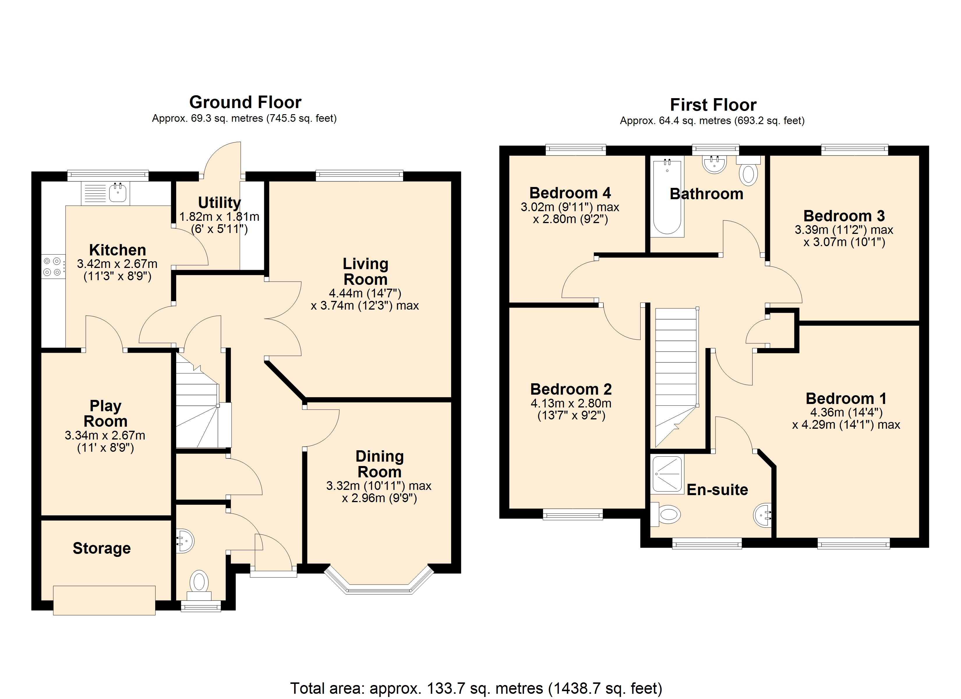 Stepping into the property, the hallway has doors to the cloakroom, dining room, living room, kitchen and useful storage cupboard as well as stairs to the first floor. The dining room is a good size with plenty of space for furnishings as well as a bay window that allows natural light to flood in. The living room is another sizeable space providing a lovely area to unwind after a long day. Fitted with a selection of units and work surface space, the kitchen has doors to the play room and utility room. Providing a useful extension to the kitchen, the utility room has further unit space and a door to the garden whilst the play room could also serve as an office or easily be changed back into a traditional garage. Completing the downstairs space, the cloakroom has a WC and wash basin.