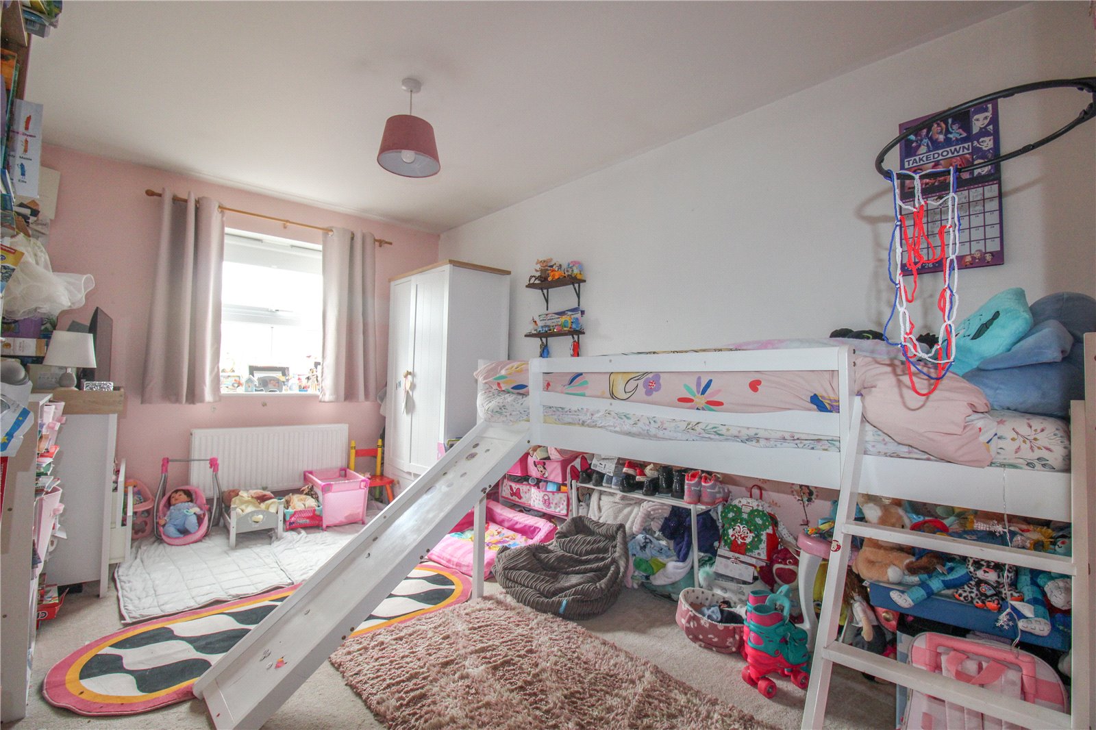 To the front of the property there is a selection of plants and shrubs with a path to the front door as well as driveway parking leading to the garage. The rear garden is mostly laid to lawn with a patio area that’s provides a lovely spot for a table and chairs.