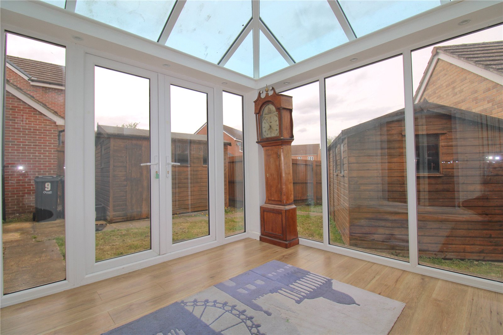 Externally, the property has a lawn front garden with a path to the front door as well as an enclosed rear garden. The garden is larger than first impression suggest with a lot of the space taken with two enormous sheds. There is a gate to the rear where you find the parking area with driveway parking leading to the garage.