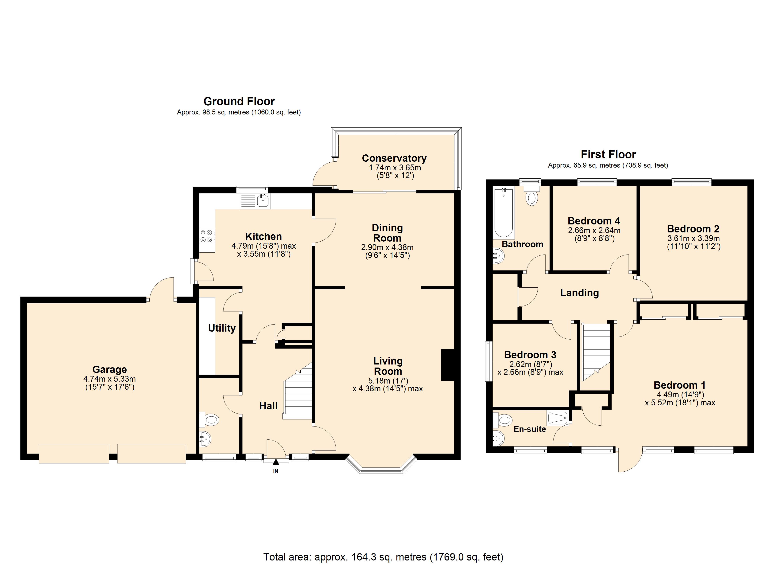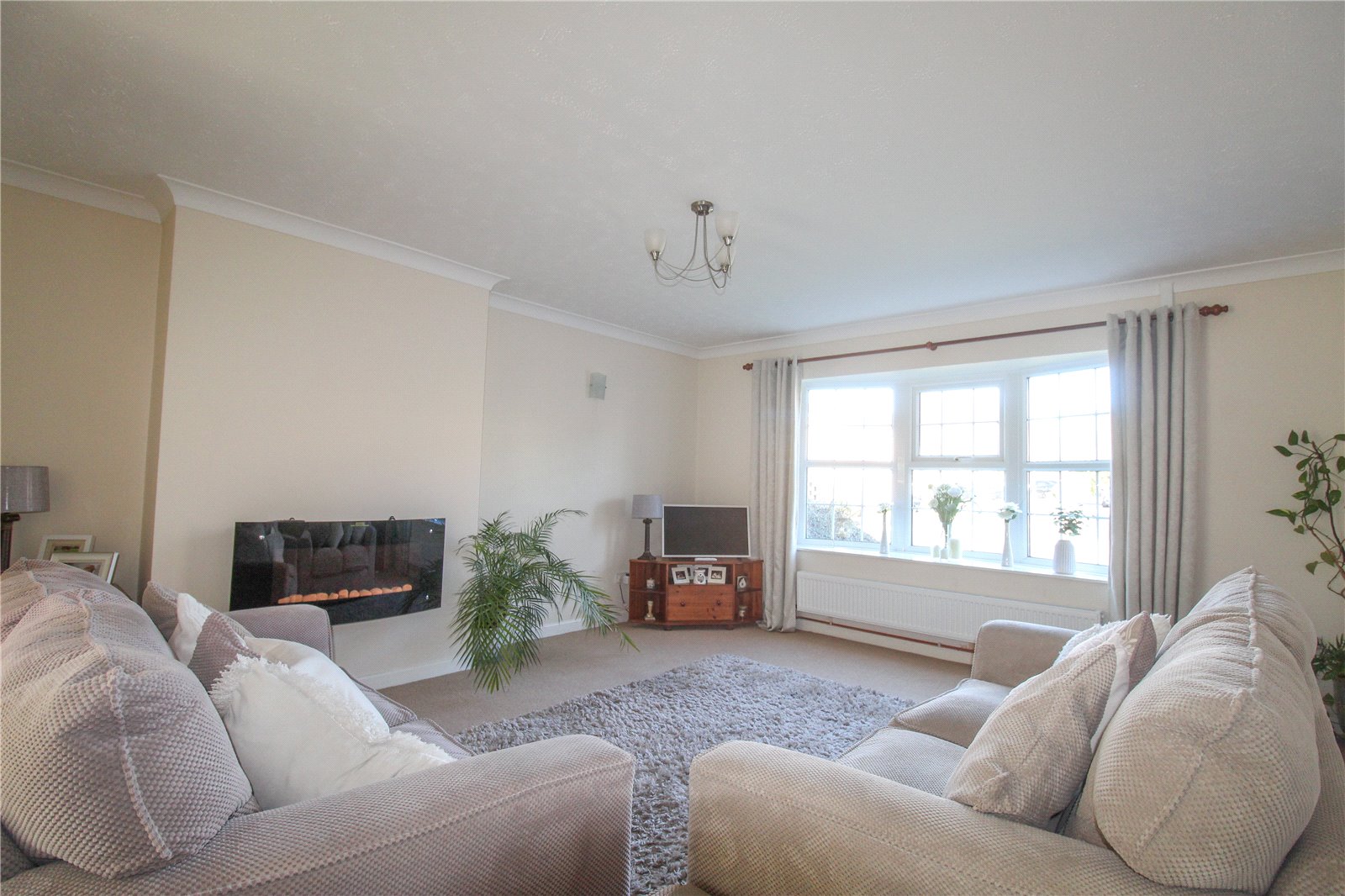 Stepping into the property, the sizeable hallway has doors to the living room, kitchen and cloakroom as well as stairs to the first floor. The living room is a lovely size with a bay window that floods the room with light as well as an opening to the dining room. The dining room is a good social space that can fit a large table and chairs and has a door to the kitchen as well as patio doors to the conservatory. Fitted with a selection of units and work surface space, the kitchen is great size with a useful utility room that has space for appliances as well as a door to the garden. Completing the downstairs space, the cloakroom has a WC and wash basin.