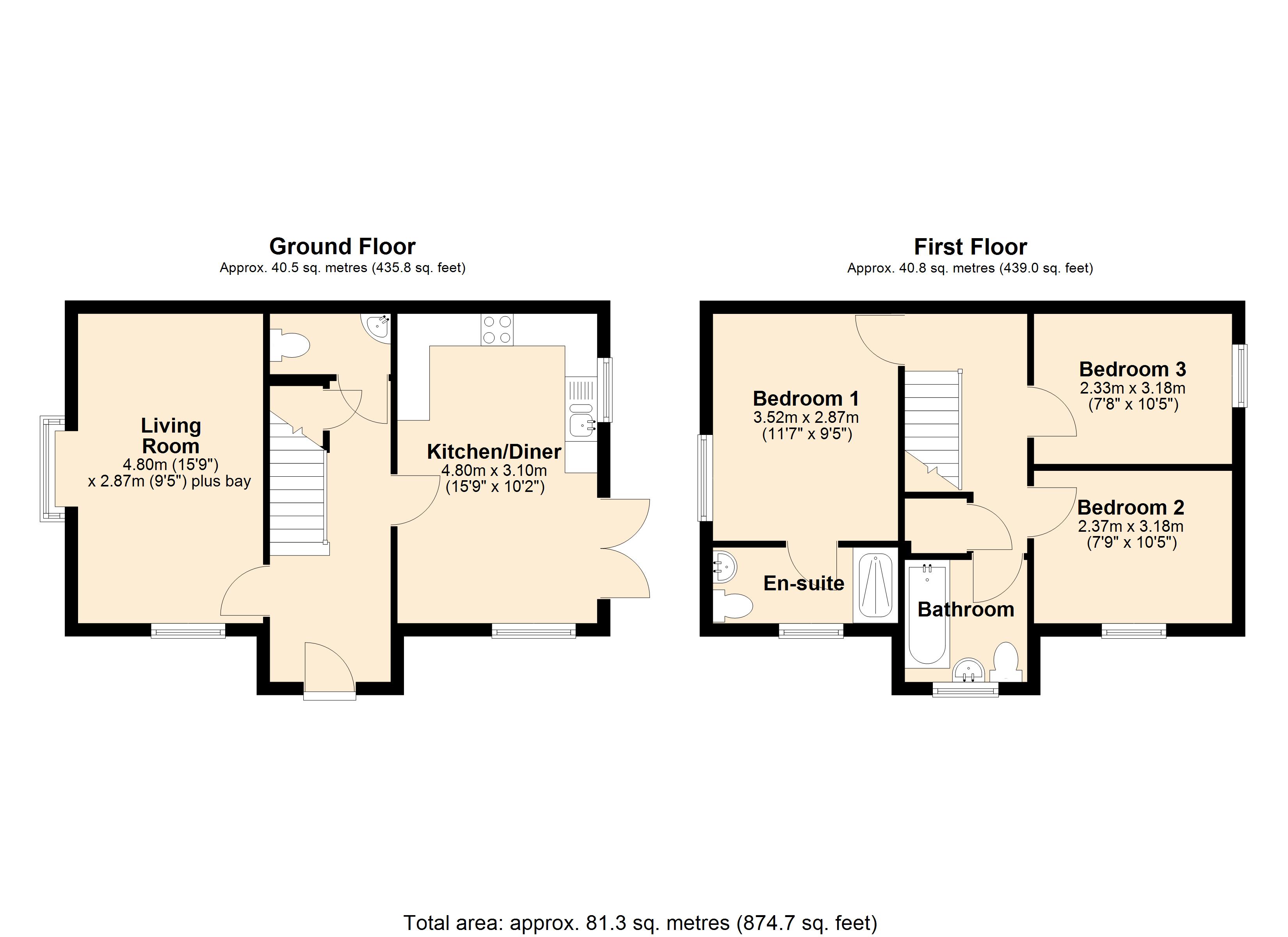 Stepping into the property, the central hallway has stairs to the first floor as well as doors to the living room, downstairs cloakroom and kitchen-diner. The dual aspect living room enjoys a bay window to the side whilst the fabulous kitchen-diner has French doors onto the garden. Moving upstairs, bedroom one is a great double bedroom with ensuite shower room whilst bedrooms two and three are similarly sized small doubles. Completing the accommodation is the bathroom where you find a bath, WC and wash basin.