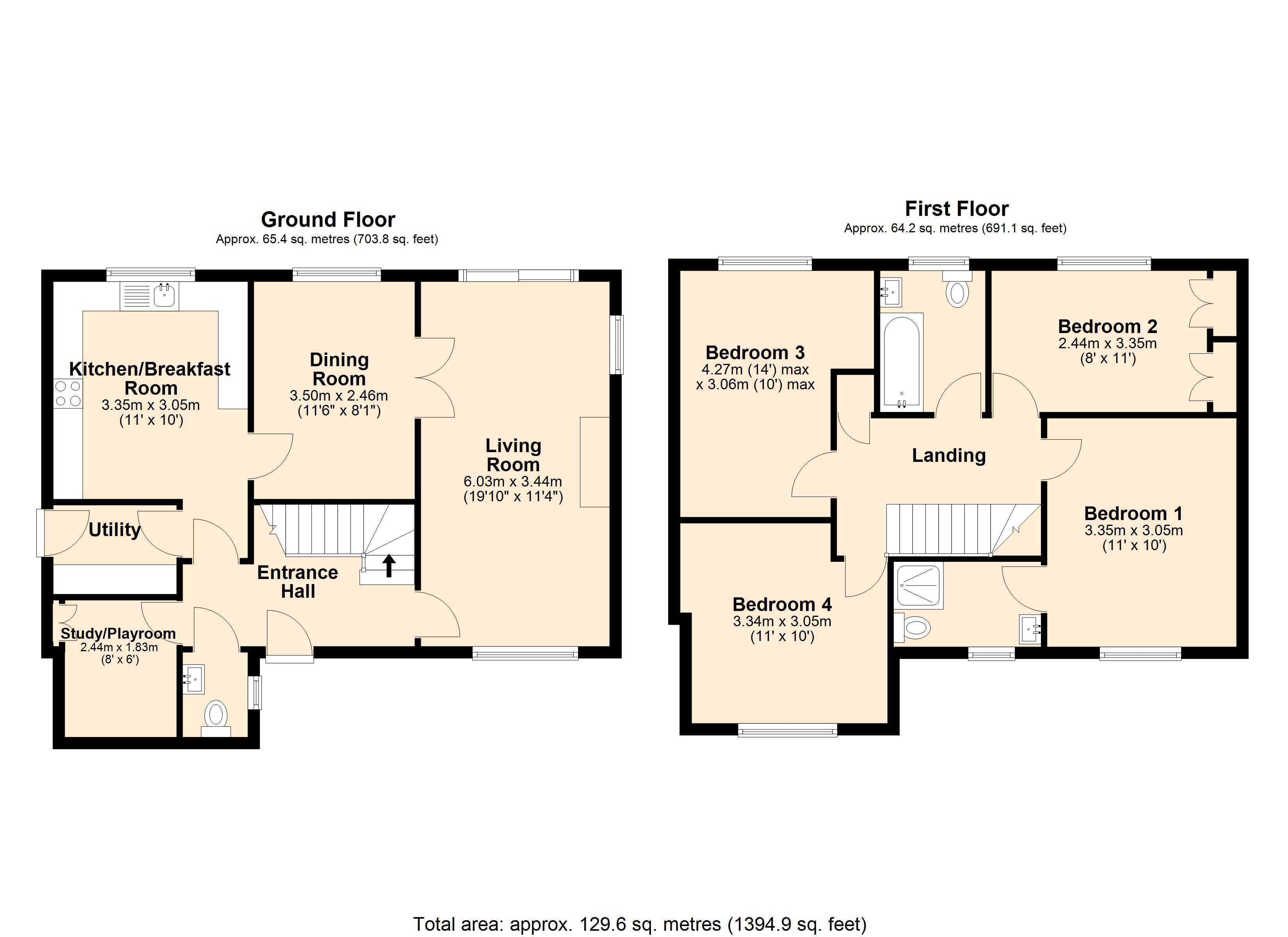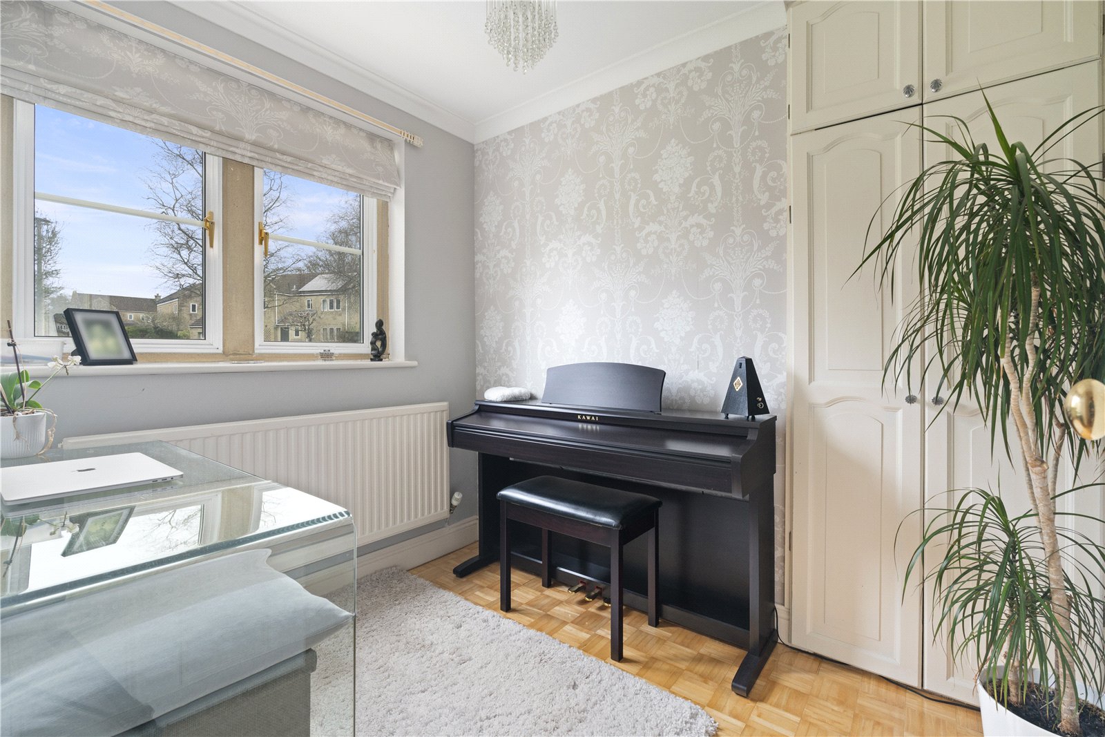 Internally the property benefits from a spacious entrance hall providing passage to the first floor as well as access to the living room, cloakroom, study and kitchen. The living room is particularly impressive, full length, benefitting from garden access and a triple aspect which floods the room with natural light. From the living room, you can access the dining room, a perfect space for more formal occasions and entertaining family and friends. There is a good size kitchen/breakfast room which looks onto the garden, an invaluable utility room, along with a versatile study/playroom, allowing the option of working from home if required, or alternatively, a great space for the children’s toys and Xbox. The first-floor accommodation features four generous bedrooms, ensuite shower room and the family bathroom.