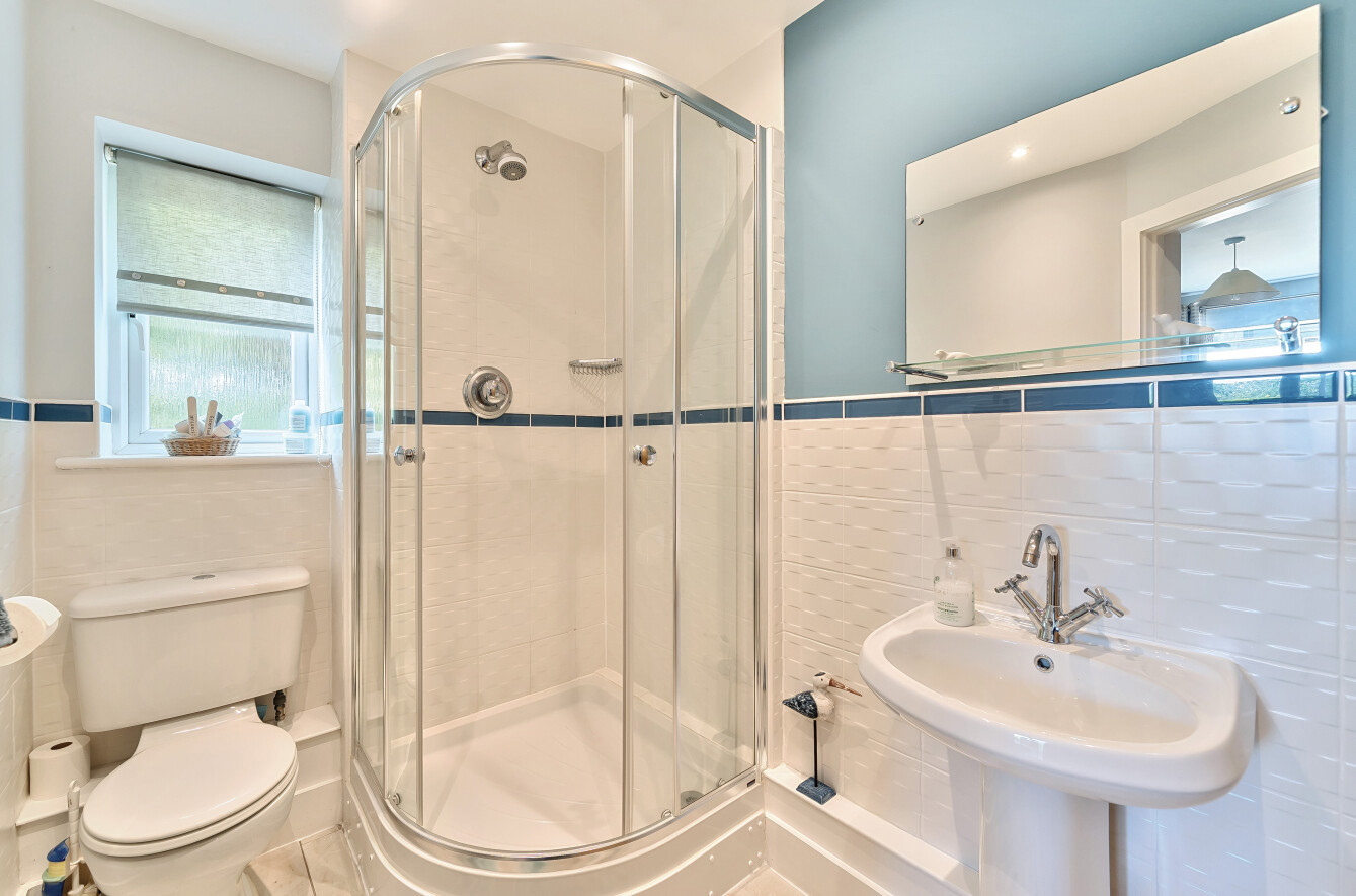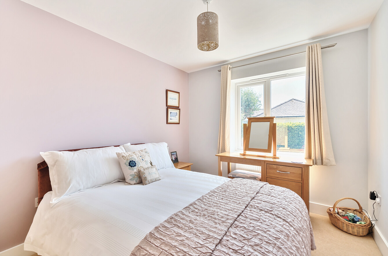 BEDROOM 2: 12’6 max x 11’7 fitted wardrobe, double aspect with main window overlooking rear garden, ensuite shower room with shower cubicle, WC, sink, heated towel rail.