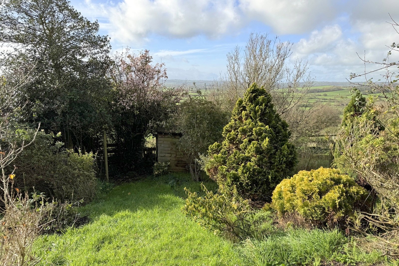 The rear garden is a particular highlight, enjoying an elevated position that takes full advantage of the spectacular views across the Blackmore Vale. There is excellent potential to create a wonderful terrace for outdoor entertaining, leading to a mature garden interspersed with flower beds and a variety of established plants. The lawn slopes down towards an adjoining field, providing an idyllic spot for a summer house or garden cabin, perfect for relaxing and soaking in the far-reaching views.