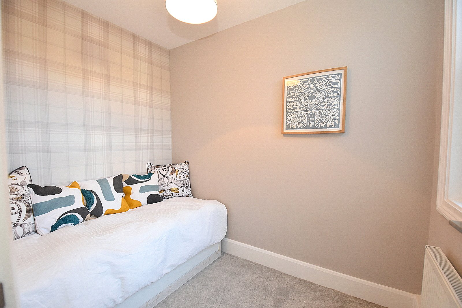 BEDROOM 2: 8’10” x 6’2” Double glazed window overlooking the garden, radiator and smooth plastered ceiling.