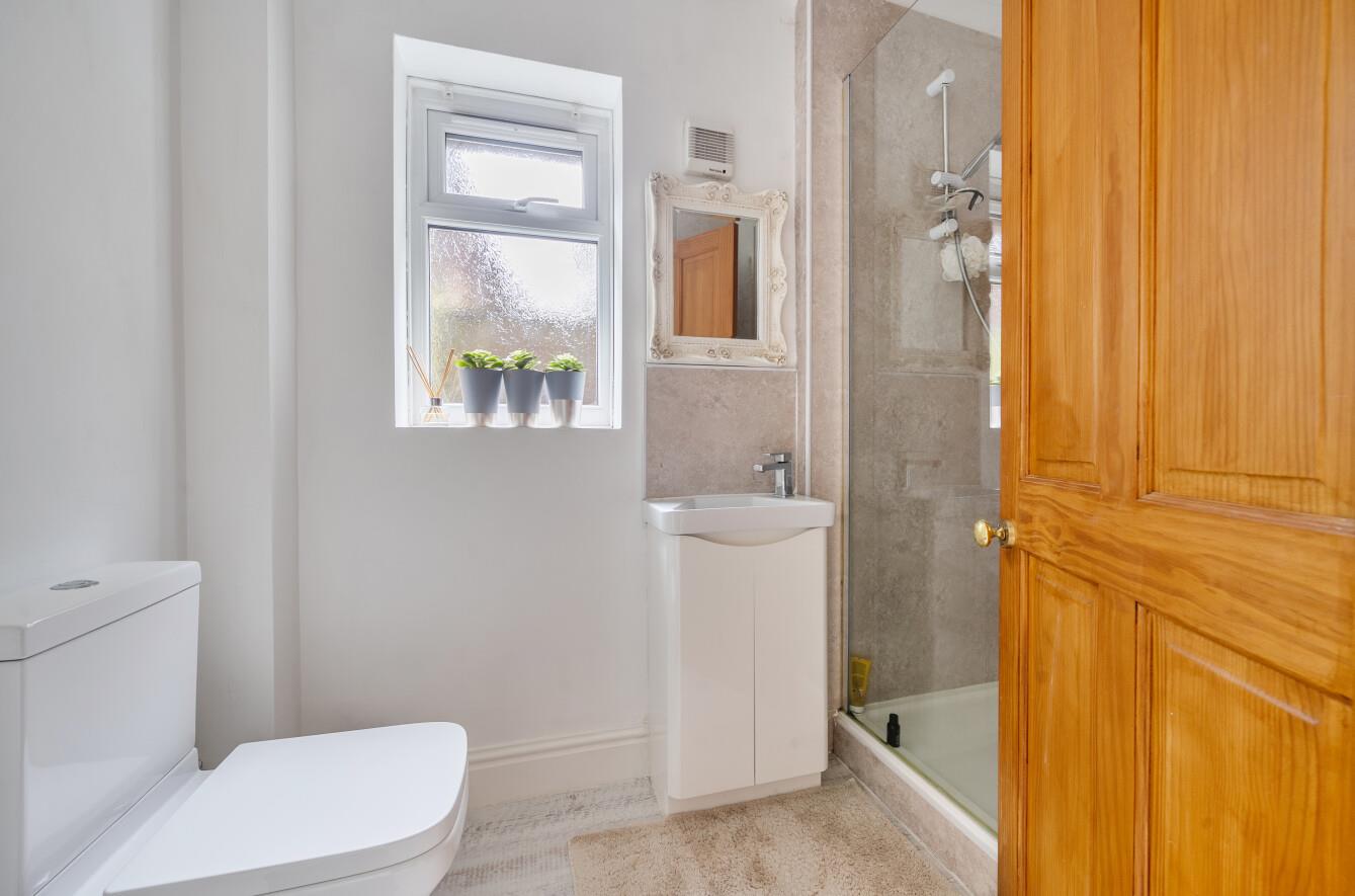 Shower Room: - Suite comprising double width shower cubicle, wash basin with cupboard under, WC.