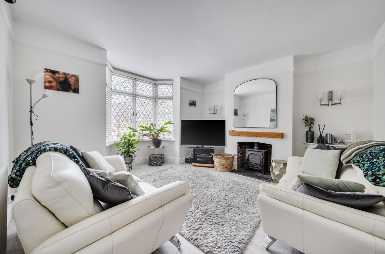 Sitting Room: - 14'9" into bay x 13'2" max (4.50m x 4.01m) Bay window, chimney breast with feature log burner.