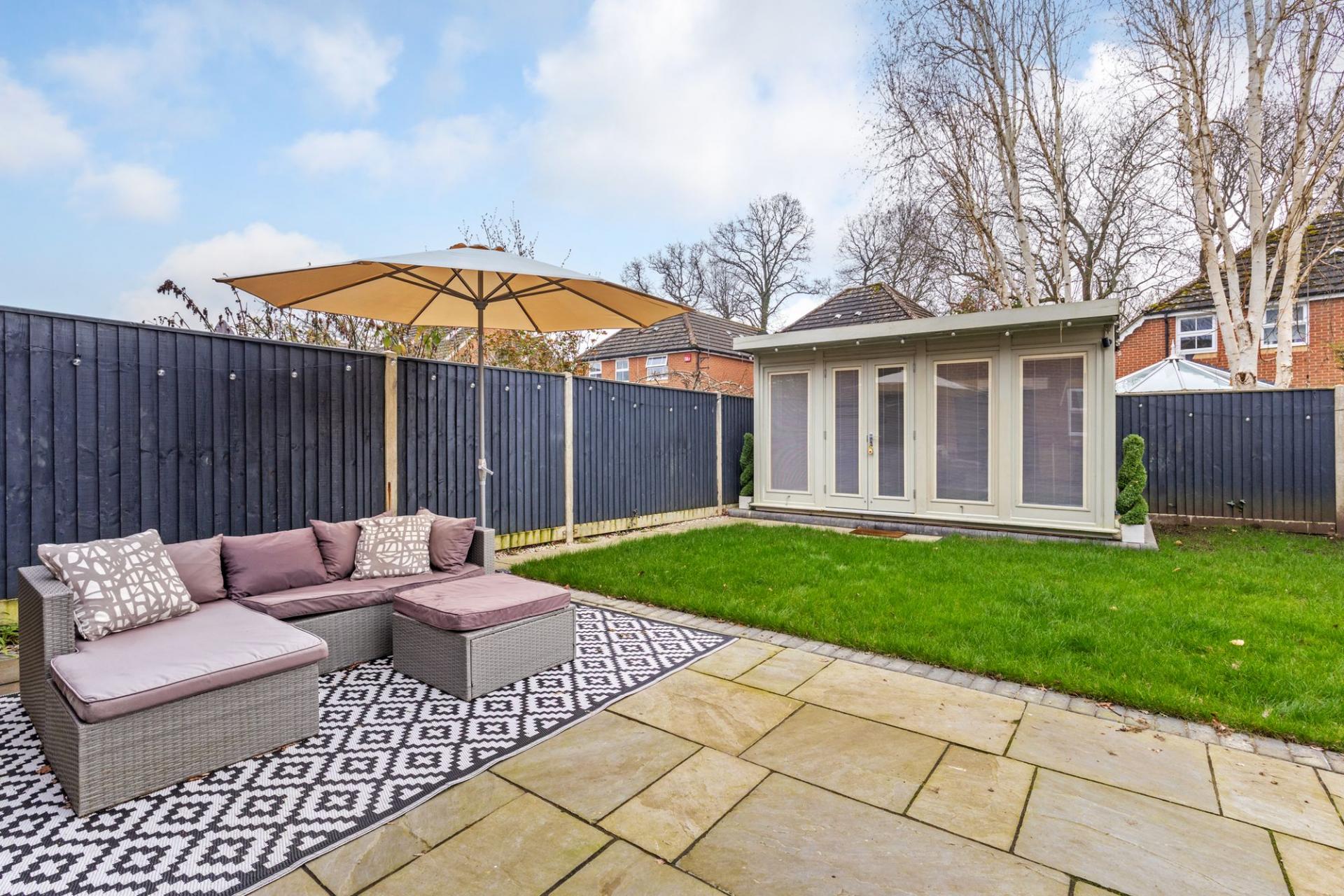 Set in a quiet residential street, this three bedroom link detached home is perfect for first time buyers, young families and downsizers alike. The current owners have thoughtfully modernised the house and have presented it well throughout. The ground floor accommodation comprises sitting room to the front with pretty bay window and a spacious kitchen/dining room to the rear with breakfast bar. Just off the kitchen is access to the garage which, whilst big enough to fit a car, also serves well as a utility area and could be further converted to create a gym or additional reception space if required (subject to relevant permissions). The first floor offers two double bedrooms and a further single bedroom, all served by the recently updated family bathroom. Externally, the rear garden has been well maintained and is largely laid to lawn with a generous patio, ideal for outside dining and entertaining. The owners have also recently added a fantastic garden office; currently used as a home studio, this space would be perfect as a gym depending on one’s needs. To the front is a driveway for up to two vehicles and there is plenty of on-street parking for guests.