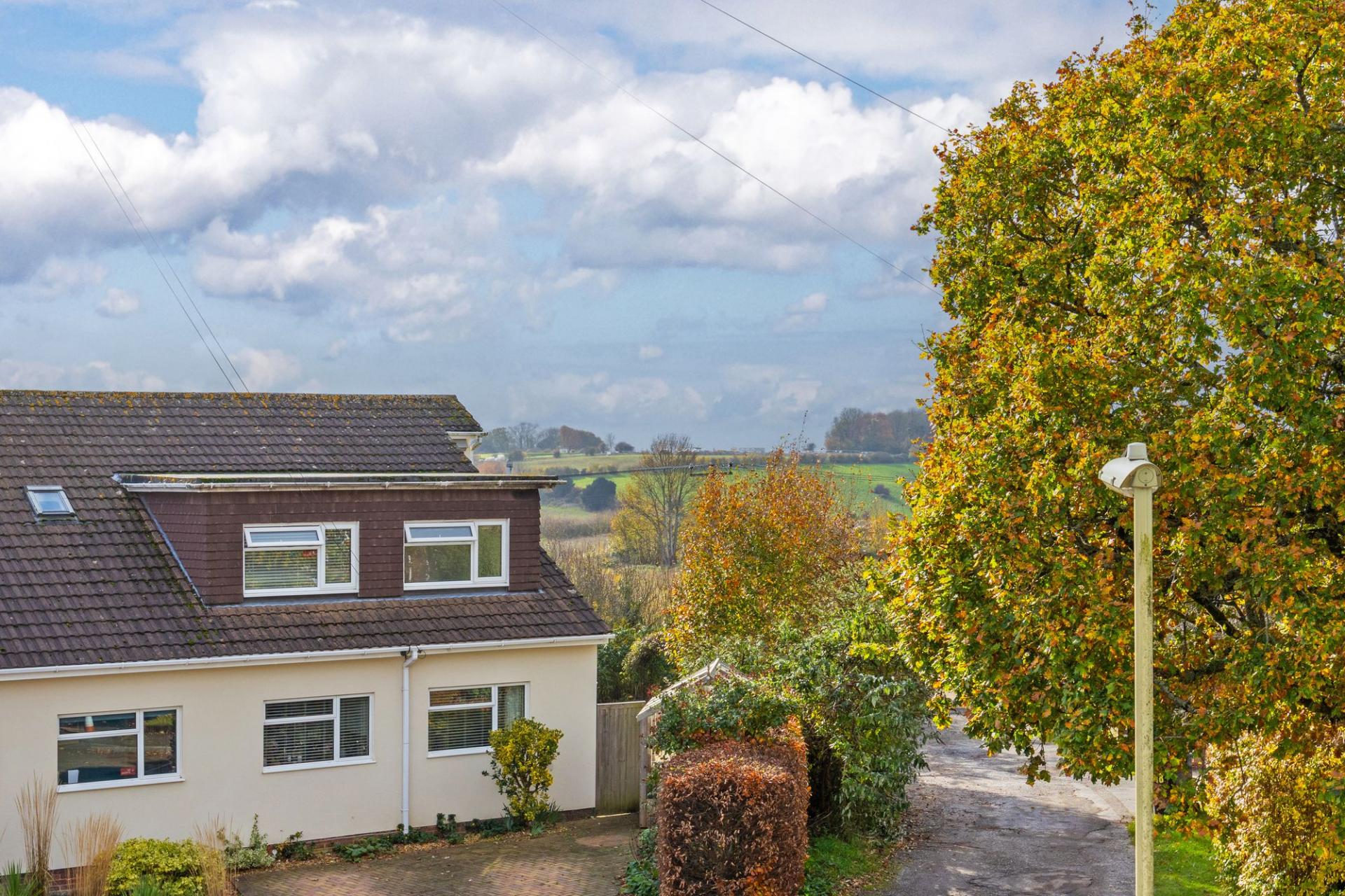 A spacious detached family house with well balanced accommodation over two floors and large southwest facing gardens.