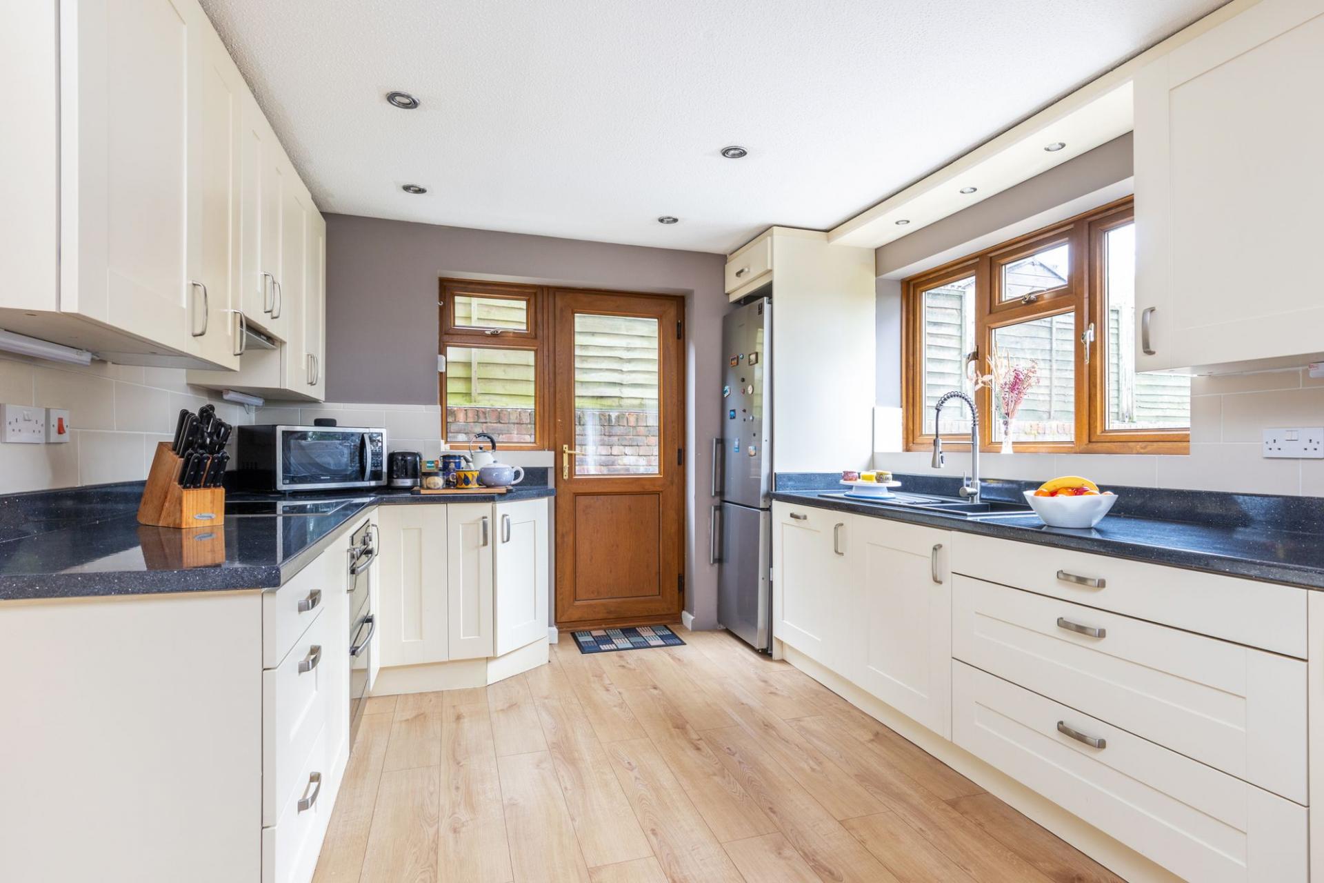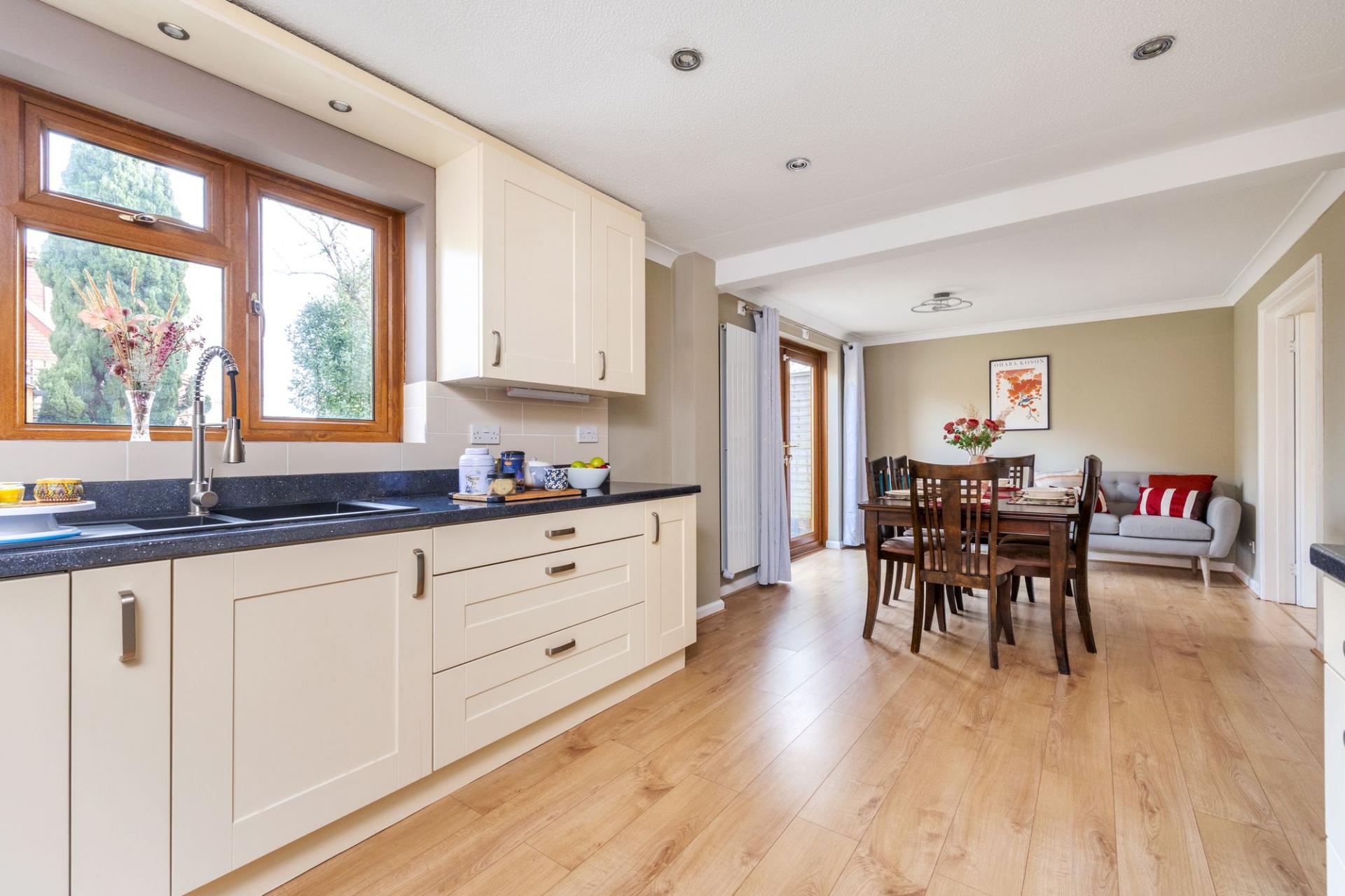 The property has a well-proportioned sitting room which leads into a generous kitchen/dining room, merged and refitted in summer 2024 creating a fantastic family space across the back of the house. There is a valuable study and separate utility room to the front of the property, alongside the downstairs cloakroom. A smart boiler has been installed in December 2024.