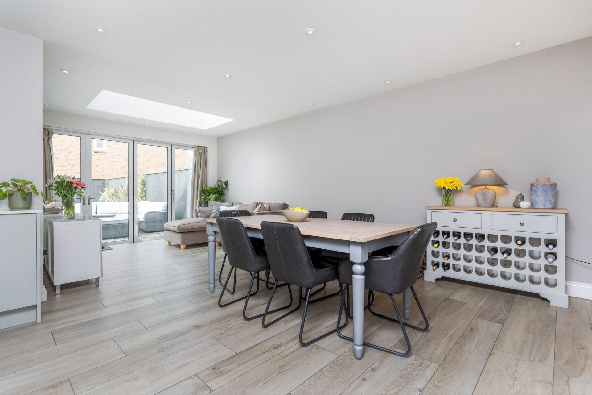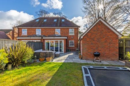 Set over three floors and with plenty of lateral space, the accommodation is extremely versatile. The ground floor briefly comprises an entrance hall, cloakroom, sitting room, useful utility room and an open plan kitchen/dining room with bi-fold doors leading out to the rear garden, creating the feel of even more space and light. The first floor offers a large principal bedroom and two further bedrooms, all served by the generous family bathroom. On the second floor are two further double bedrooms, one with an ensuite shower room, the other would make an ideal study for those working at home as it offers a peaceful space.