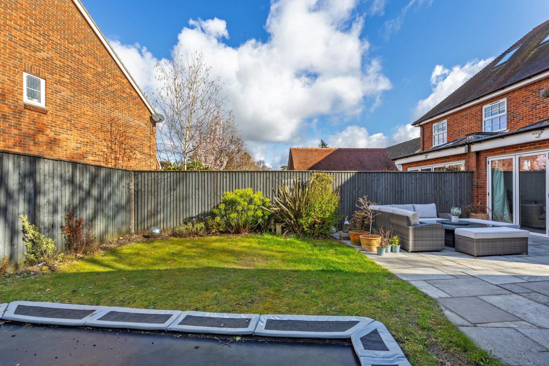 Externally, the garden is laid to lawn with a generous patio, ideal for outside dining entertaining. In addition, there is a large garage and a private driveway, providing parking for three vehicles.