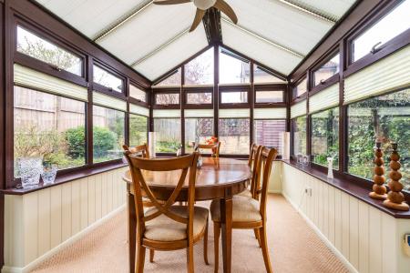 Nestled near the end of a small enclave within a sought-after cul-de-sac on the edge of Badger Farm, this well-presented home offers spacious living, privacy, and convenience. The ground floor features an expansive open-plan sitting/dining room that runs the full width of the house, with sliding doors into a bright conservatory, perfect for enjoying the garden view. The kitchen, positioned to the front, is fitted with traditional oak-fronted units, ample work surfaces, and a breakfast bar. Upstairs, there are two generously sized double bedrooms, both filled with natural light, alongside a cosy third bedroom. There is a bathroom serving the three bedrooms. The south-westerly facing garden is beautifully maintained, offering a sense of seclusion. It features a lawn area, a paved patio and path, and well-stocked flower and shrub borders. Additionally, the property benefits from a garage positioned on the same plot, complete with an up-and-over door for easy access. There is ample driveway parking.