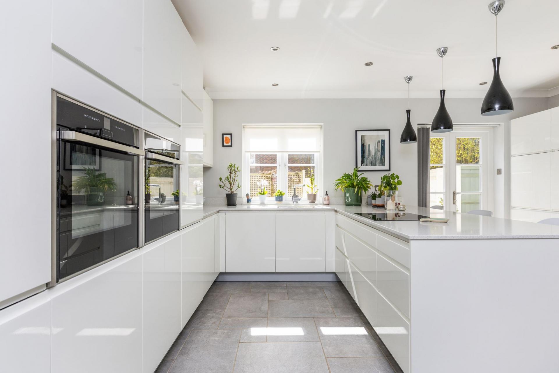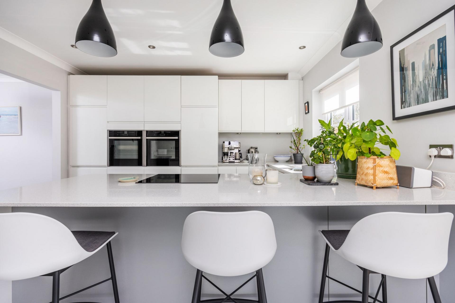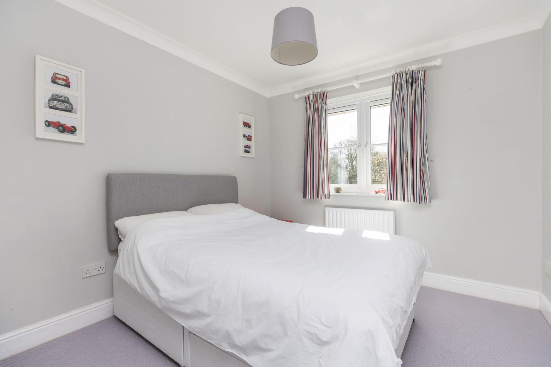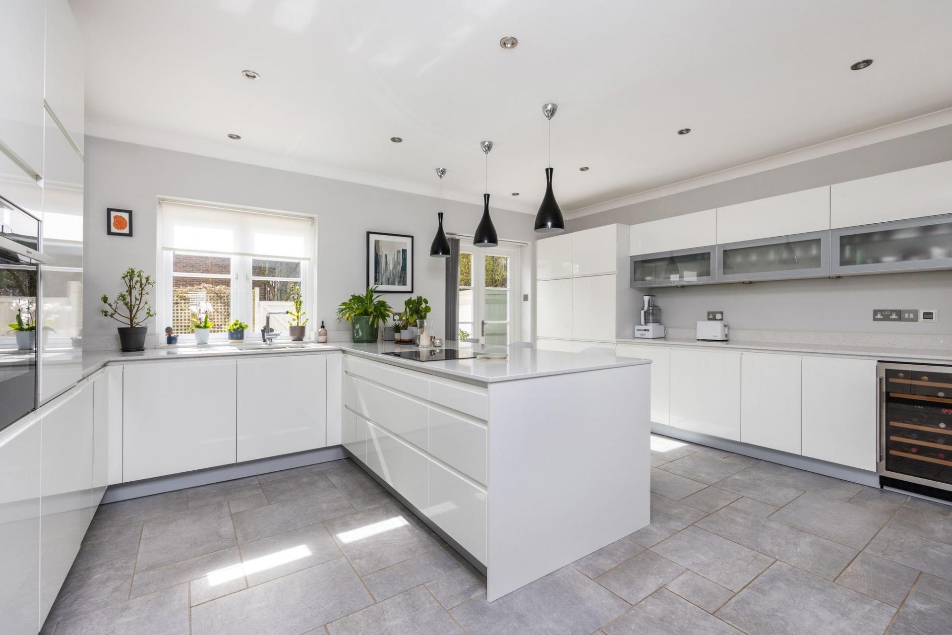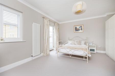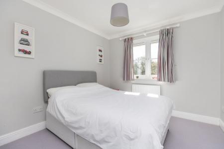 This beautifully presented semi-detached townhouse provides an excellent floor plan over three floors. The ground floor has a welcoming entrance hall with a cloakroom and stairs that rise to the upper floors. To the back of the house is a Kitchen/Breakfast Room re-fitted with a range of sleek white high gloss kitchen with slimline quartz countertops, twin ovens, induction hob, fridge, freezer and dishwasher and a peninsular unit with a breakfast bar. There is a window to the rear garden and French doors that open into the garden. The kitchen has a further range of units with an under-counter wine fridge. This space opens to the sitting/dining room, with a window to the front aspect. The first floor has a drawing room which is a spacious dual aspect room, with a Juliet balcony to the rear aspect. There is also a wall of bespoke fitted cupboards providing excellent storage. A double bedroom with adjacent cloakroom completes this floor. A turning staircase rises to the second floor with a side aspect window providing excellent natural light. There are three bedrooms: the principal having a refitted ensuite shower room, two further bedrooms are served by a family bathroom. The well screened front garden has a path to the front door. There is a south facing rear garden which is largely terraced for ease of maintenance with a small lawn, shrub borders, and a garden store. Gated access opens to two demised parking spaces.
