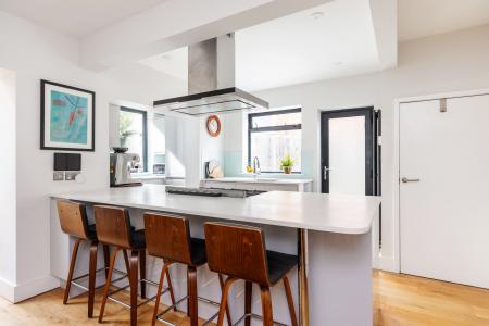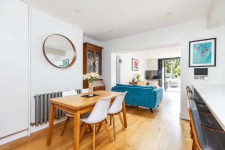 Positioned in the heart of the Westgate School catchment area, this magnificent semi-detached house has been extended and modernised to create wonderful open plan family living space. The bay-fronted sitting room remains a traditional space to the front of the house. The original kitchen and dining room to the rear have been merged and extended to create a wonderful space, perfect for modern family living and entertaining. The kitchen has been refitted with contemporary handleless units. The family room extends from the dining room towards the garden and has folding doors creating a seamless transition onto the patio terrace.