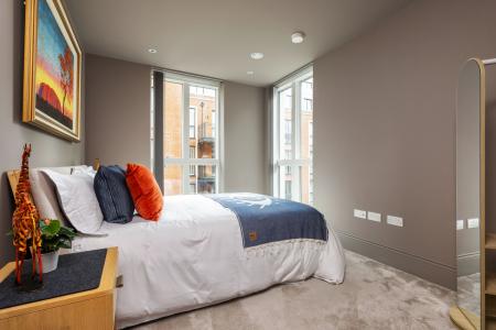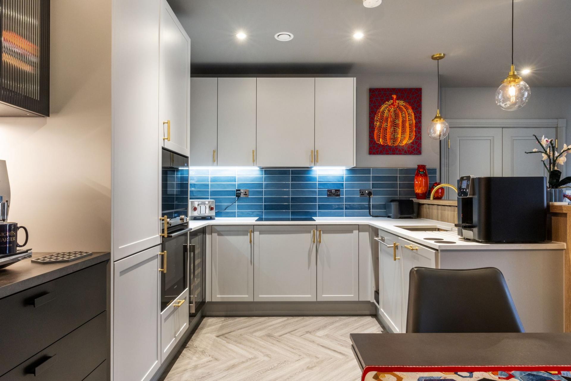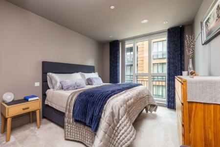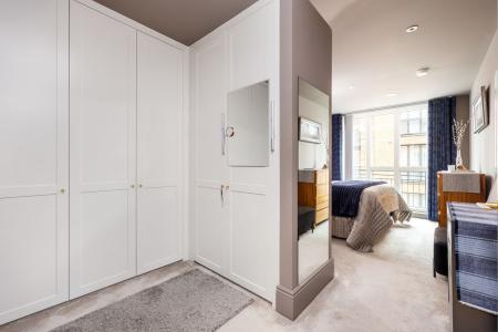 This magnificent apartment on the second floor of Lancelot House is beautifully proportioned throughout. It is presented impeccably with a heightened specification since the recent build, with additional bespoke fitted cabinetry. There is a wonderful entrance hall with generous utility cupboard and excellent storage which leads into the fabulous open plan sitting/dining room/kitchen with covered balcony. The large, bright principal bedroom benefits from a spacious dressing area and an ensuite shower room. The second bedroom has a dual aspect with windows on both external walls and provides a versatile space for a double bed and study area. There is an additional luxury bathroom. The apartment benefits from two covered parking spaces in the underground carpark whilst residents can also enjoy the gym (located in this block) as well as the manicured communal gardens.