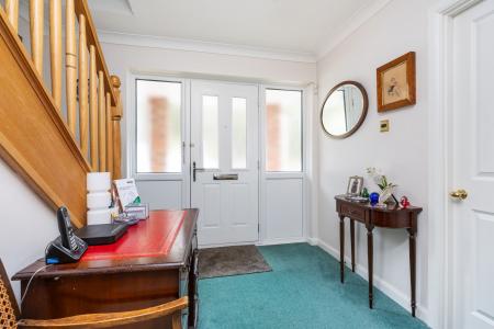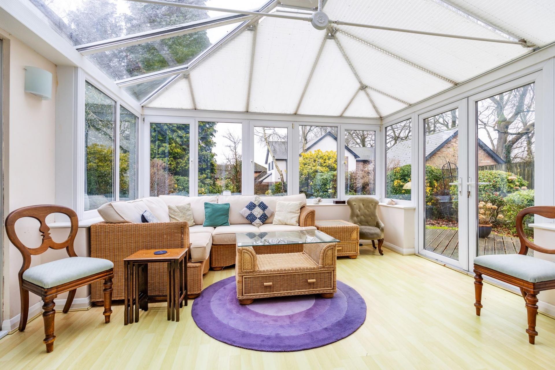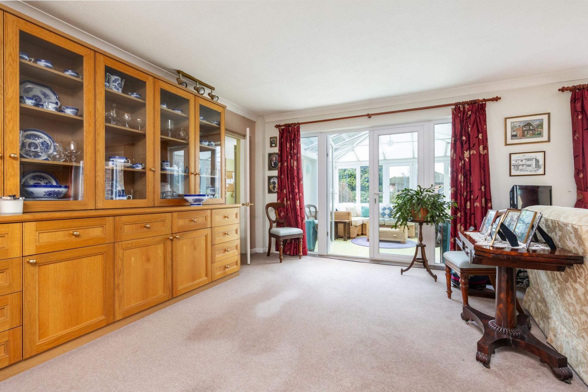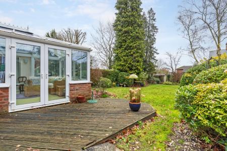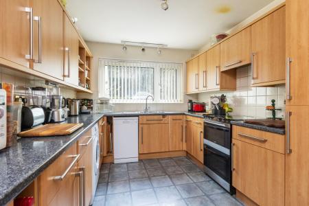 This family sized detached house is linked by the home office to next door's garage. The property has a welcoming entrance hall with centralised front door and glazed slips providing plenty of light. There is a large L shaped sitting/dining room, which has sliding patio doors into the garden and an additional window to the side aspect. This room has an open fire and is fitted with a range of oak cabinetry. A large conservatory has French doors that open into the garden and there is a separate home office with two fitted desks and an abundance of storage, this room is also double aspect.