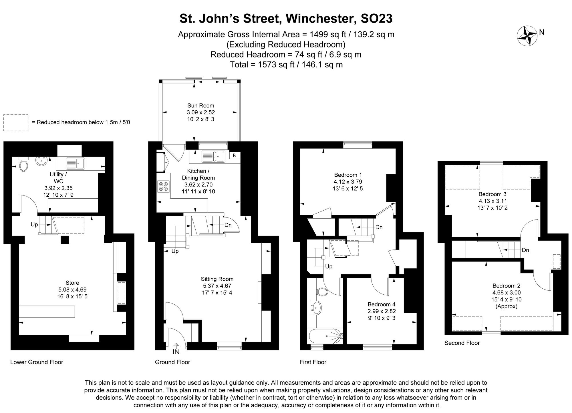 This well-proportioned house is situated on the west side of St. Johns Street and has lovely views back towards the city from the upper floors. The property has been in the same ownership for some years and now requires some improvement and upgrading. The spacious accommodation can be found over four floors. The ground floor has a large sitting room with a window to the front aspect opening into a kitchen/dining room which has a large window with a sash opener to the rear aspect, the sunroom completes this floor. A lower ground floor offers plenty of scope and is currently a store to the front and a utility room to the back. The first floor has two bedrooms and a bathroom whilst there are a further two bedrooms on the second floor. It is rare to see a house as spacious as this property within St. Johns Street and provides a great opportunity to create a stylish property with plenty of space as well as an off-road parking space and residents on street parking.