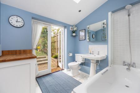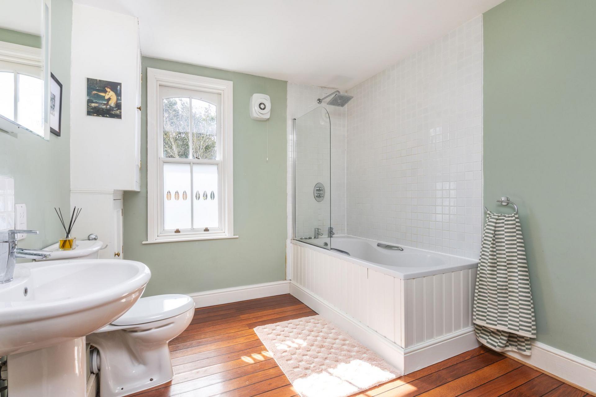 This classic Victorian end-of-terrace house has been sensitively modernised and upgraded by the current owner, whilst still offering scope to add further value should one wish. Its versatile accommodation can be used either as a three bedroom with open plan kitchen and sitting room or as a two bedroom with large study. The ground floor has a welcoming hallway and leads to the third bedroom on the left, which has a traditional style fireplace and large sash window to the front. This room could also be used as a large study. To the rear of the property is the open plan kitchen/dining room and cosy reception area. The property has been extended to the side and rear to create a beautifully bright dining area off the kitchen along with a sizeable downstairs family bathroom at the back.
