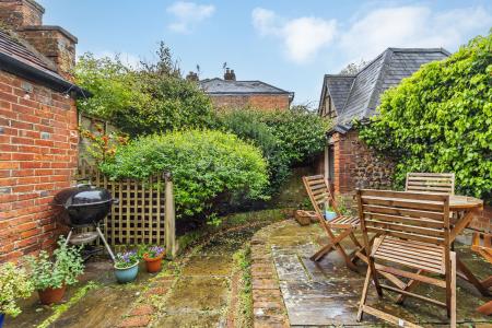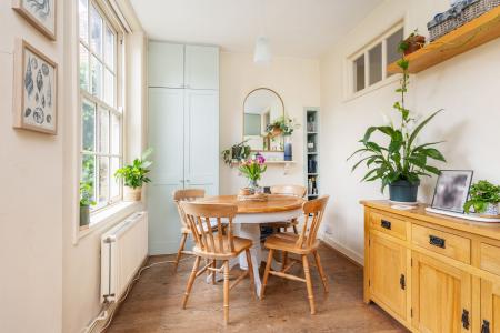 Charming period cottage with accommodation over two floors, behind a period red brick façade, with inset windows with sash openers and under a clay tile roof. Internally, the property has remarkably high ceilings which creates a feeling of space. A traditional painted front door opens into an entrance hall with a fitted oak floor; stairs rise to the first floor with fitted cupboards beneath. The sitting room has a window to the front aspect with a sash opener and secondary glazing; a decorative fireplace is flanked by fitted cupboards with bookcases above. The kitchen/dining room accounts for the full width of the house and, again, has an oak floor and is fitted with a neat arrangement of hand painted units to one side, with granite countertops and upstands. There is also space for a table and chairs. This room has two windows and a part glazed door that open into the garden, which creates a light and airy atmosphere. The first floor has a good double bedroom with two windows to the front aspect, and fitted wardrobes. The second bedroom has a rear aspect ‘Gothic style’ window, as does the adjacent bathroom which has a bath with shower over and fitted screen, low level W.C. and wash hand basin. Outside, the rear garden is largely paved for ease of maintenance with a garden store, shrub borders and is south facing.