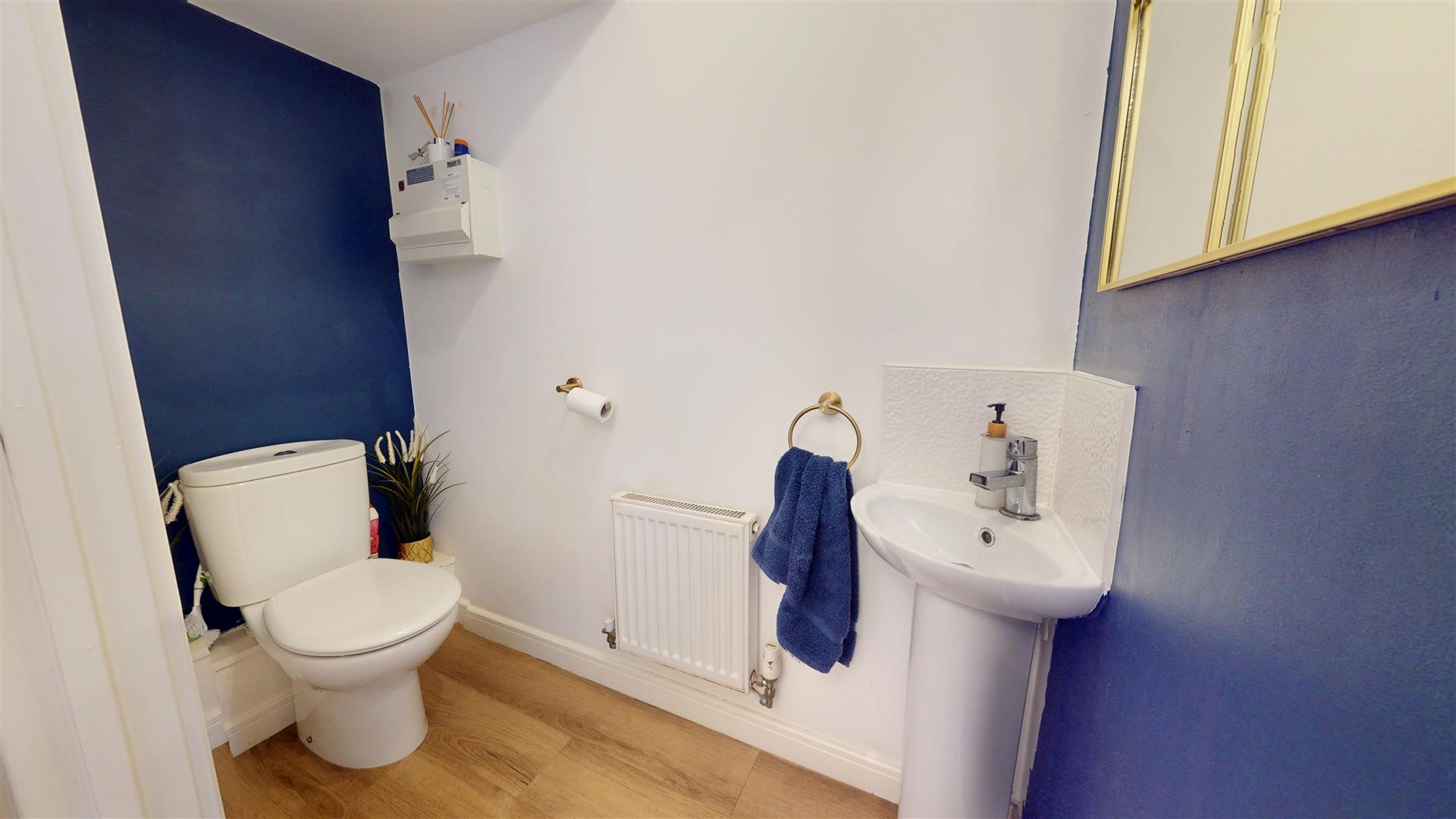 Upon entering through a composite anthracite UPVC front door, you are welcomed into a stylish hallway that sets the tone for the quality finish throughout. To the right is a well-proportioned lounge boasting a feature fireplace and bay window, while to the left lies the contemporary open-plan kitchen/dining room, complete with high-gloss wall and base units, contrasting work surfaces, integrated appliances, and space for a dining table and chairs. French doors lead from the dining area onto a paved patio, perfect for indoor-outdoor living. A modern ground floor WC/cloakroom completes the downstairs layout.