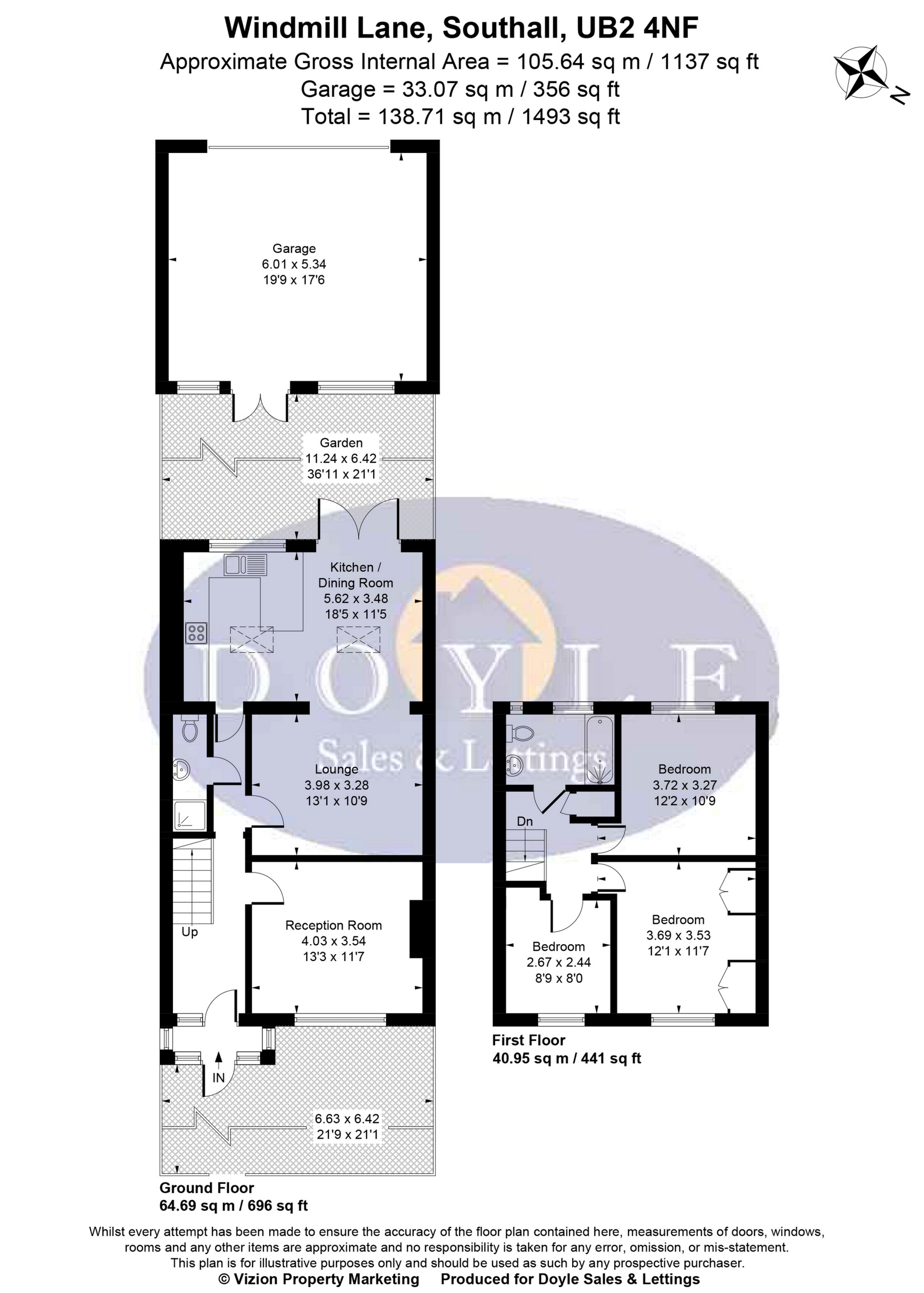 A well-presented, chain free, 3 bedroom, mid-terrace, family home with excellent views and a substantial double garage, offering over 1,100 sq ft of internal living space. The property provides bright and versatile accommodation throughout, the ground floor comprises a bay fronted reception room, a separate lounge, a spacious kitchen/dining room overlooking the garden, and the added convenience of a ground floor shower room. Upstairs offers 3 bedrooms (2 generous doubles and a single) and a spacious family bathroom. Further benefits include a private rear garden leading to a large double garage (approx. 356 sq ft) accessed via the rear, and excellent opportunity to extend into the loft (STPP). Windmill Lane is conveniently located close to a range of local amenities, reputable schools, parks and excellent transport links, including Hanwell & Southall Stations (Elizabeth Line), as well as easy access to the A40, A312 and surrounding road networks.