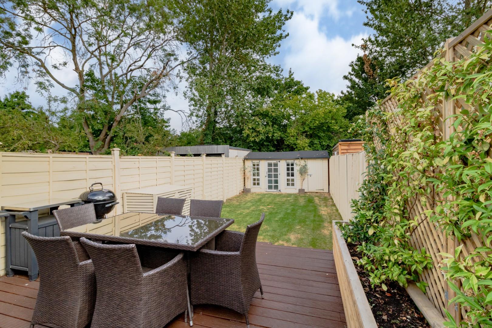 To the first floor, there are three bedrooms that provide a light and airy feel throughout, furthermore the landing houses three custom fitted wardrobes. Externally, the property offers a good sized garden with a spacious decking area and a garden office which offers potential for a variety of uses. Further benefits include the potential to extend (STTP), 3 lanes of residents permit parking and NO ONWARD CHAIN.