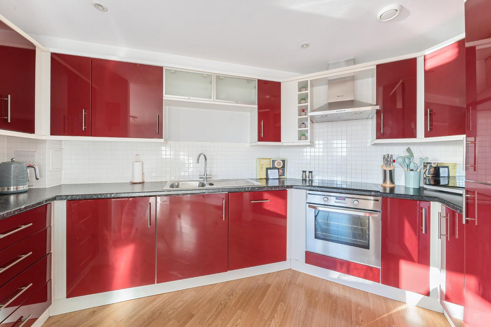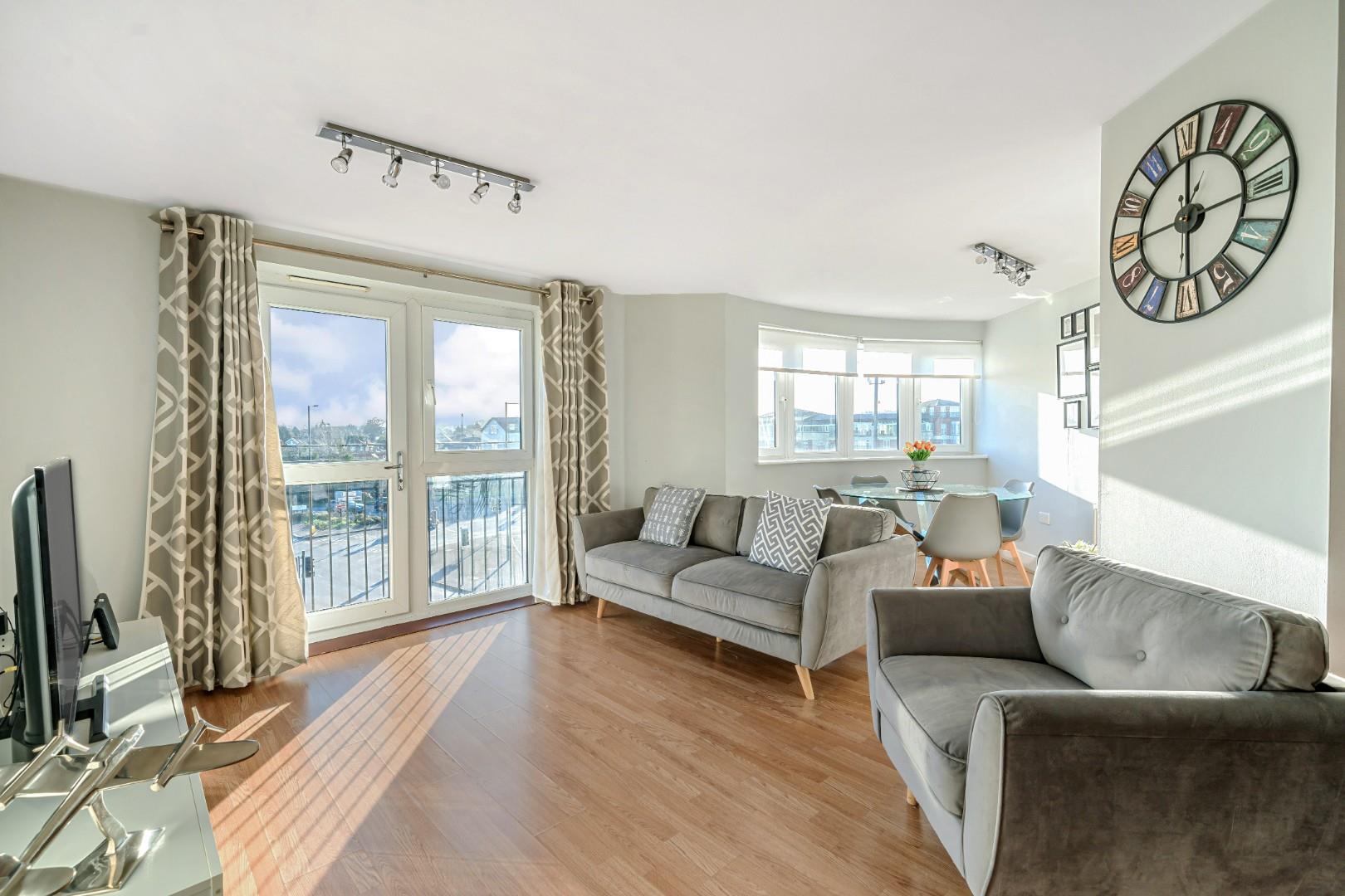 A spacious west facing apartment with a open plan kitchen reception area, conveniently located on Clarence Road in the popular block of Pavilions. This stunning apartment comes with two double bedrooms, both with their own bathrooms and an additional WC. Benefitting from a modern integrated kitchen, allocated parking in a private secure gated development. Offered to the market chain free.