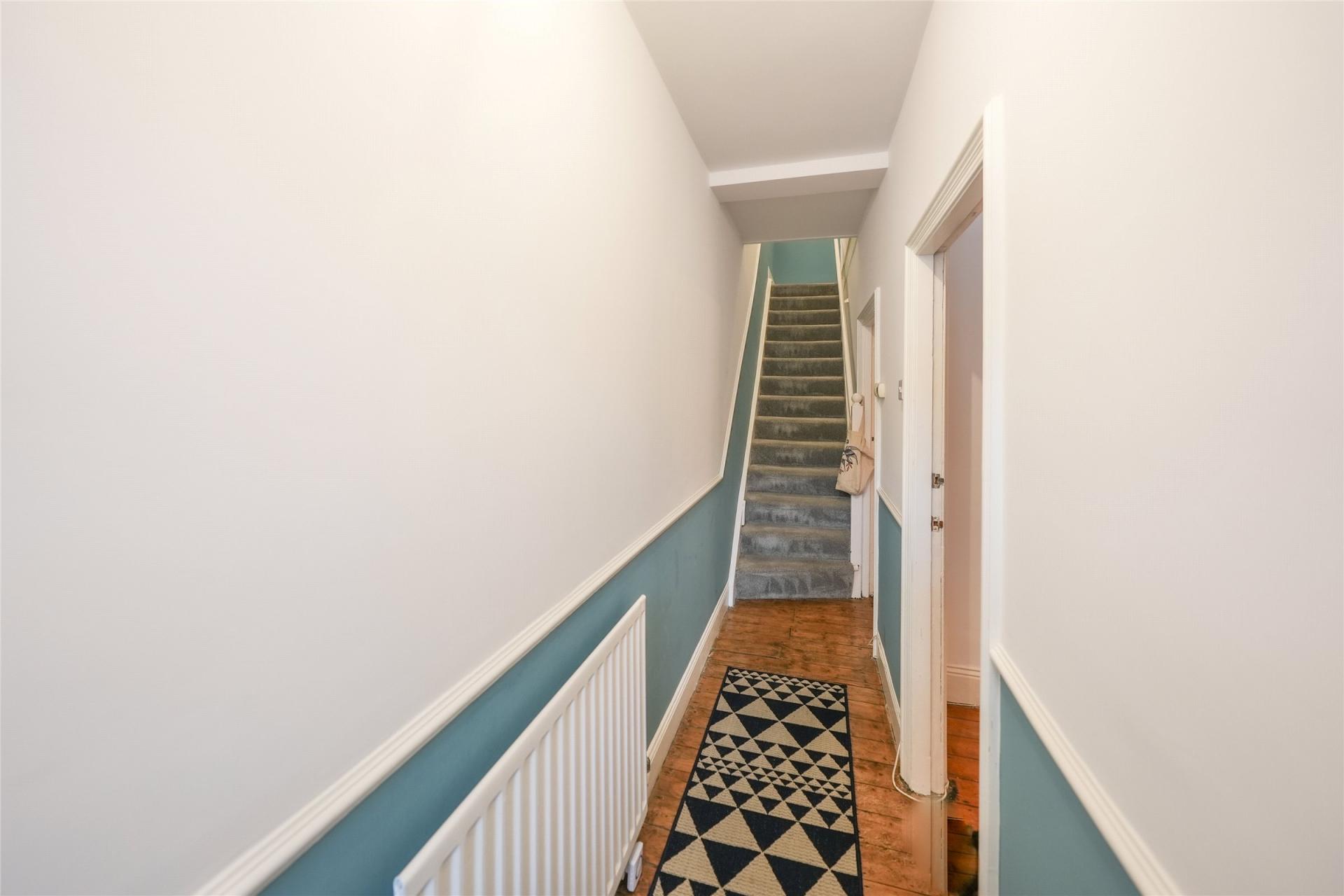 Entrance Hallway    Featuring stripped and varnished floorboards and having a dado rail, central heating radiator and staircase to the first floor.
