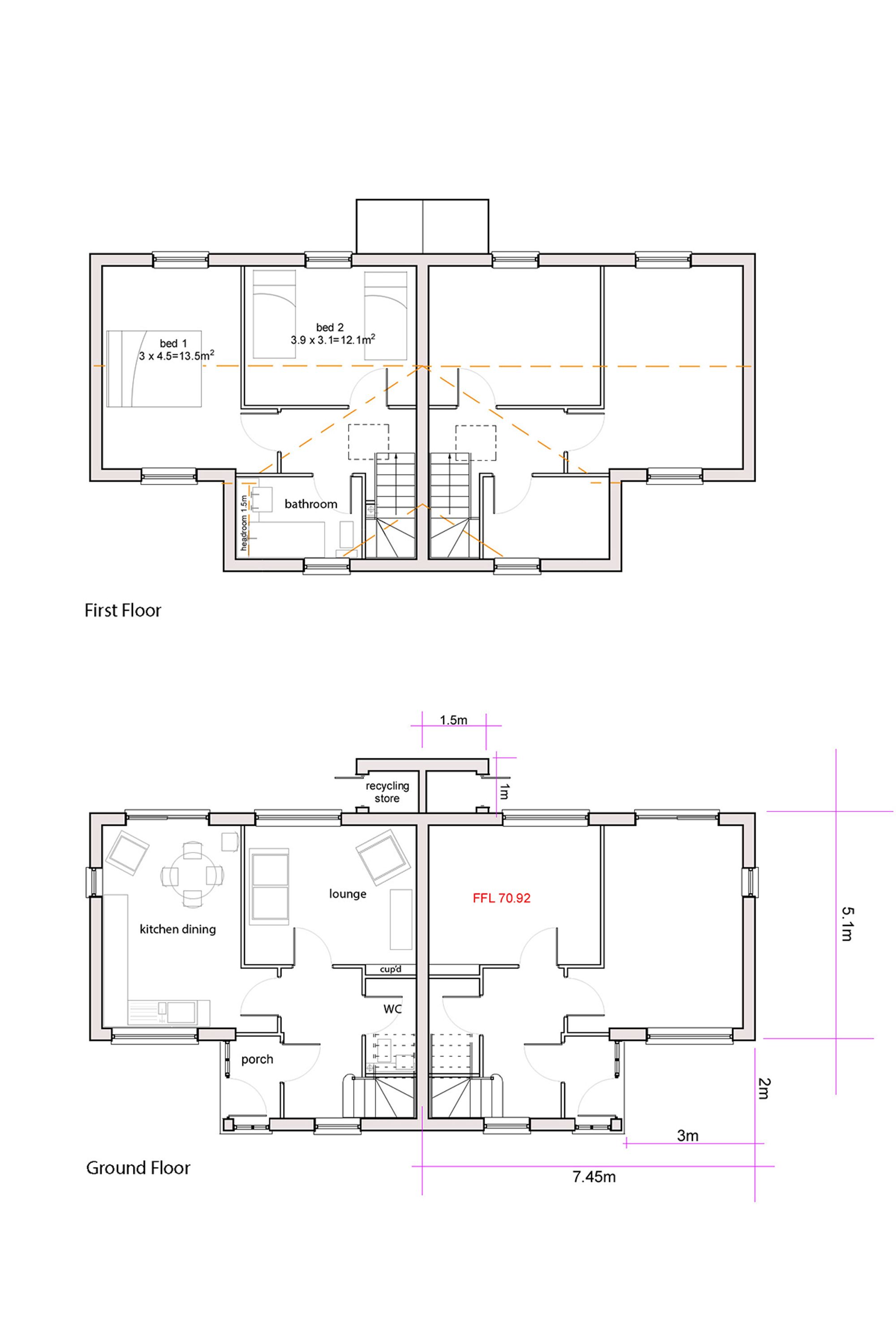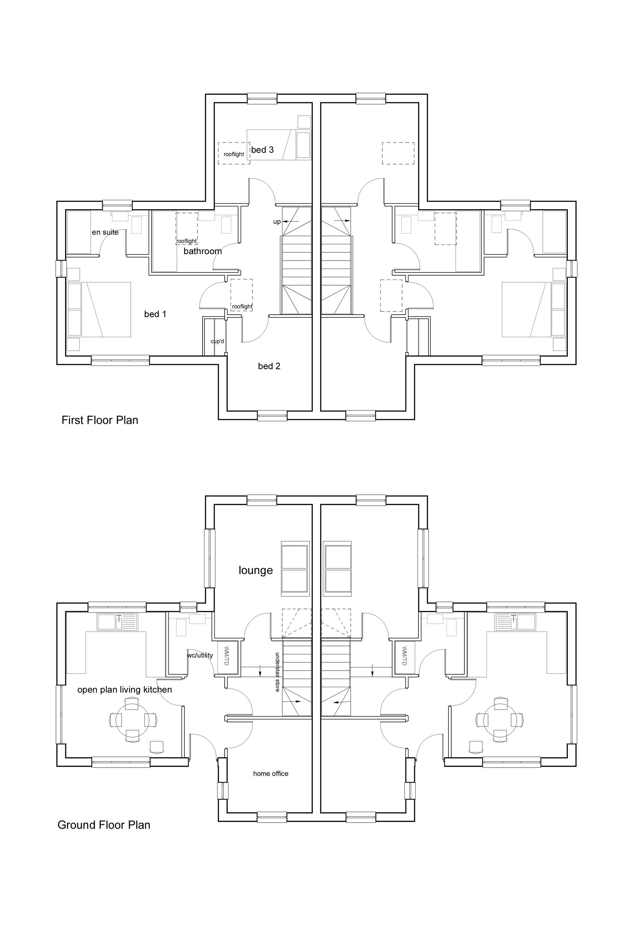The central garden ground between the two plots is included in the sale, removing the previous pedestrian right of way that crossed the site. The buyer will be required to construct the retaining wall along the boundary with Wayleaves, as shown on the planning drawings. Final layouts, finishes and landscaping remain subject to reserved matters approval.