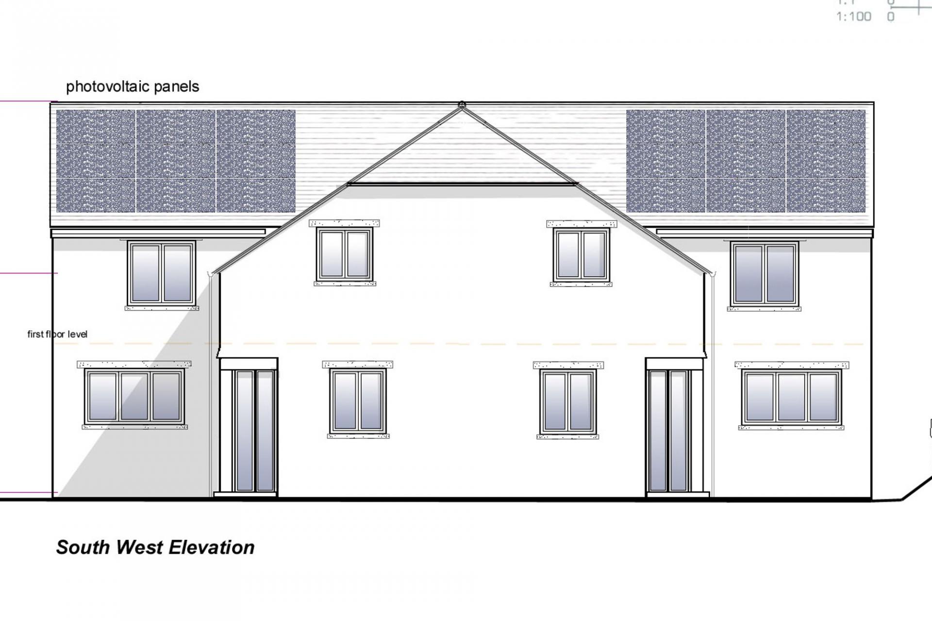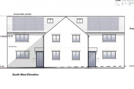 The site extends to approximately 0.3 acres and adjoins a bungalow known as Wayleaves. Each plot has space for its own garden and parking, and the gentle slope of the land means the finished homes should enjoy open views over the surrounding fields.