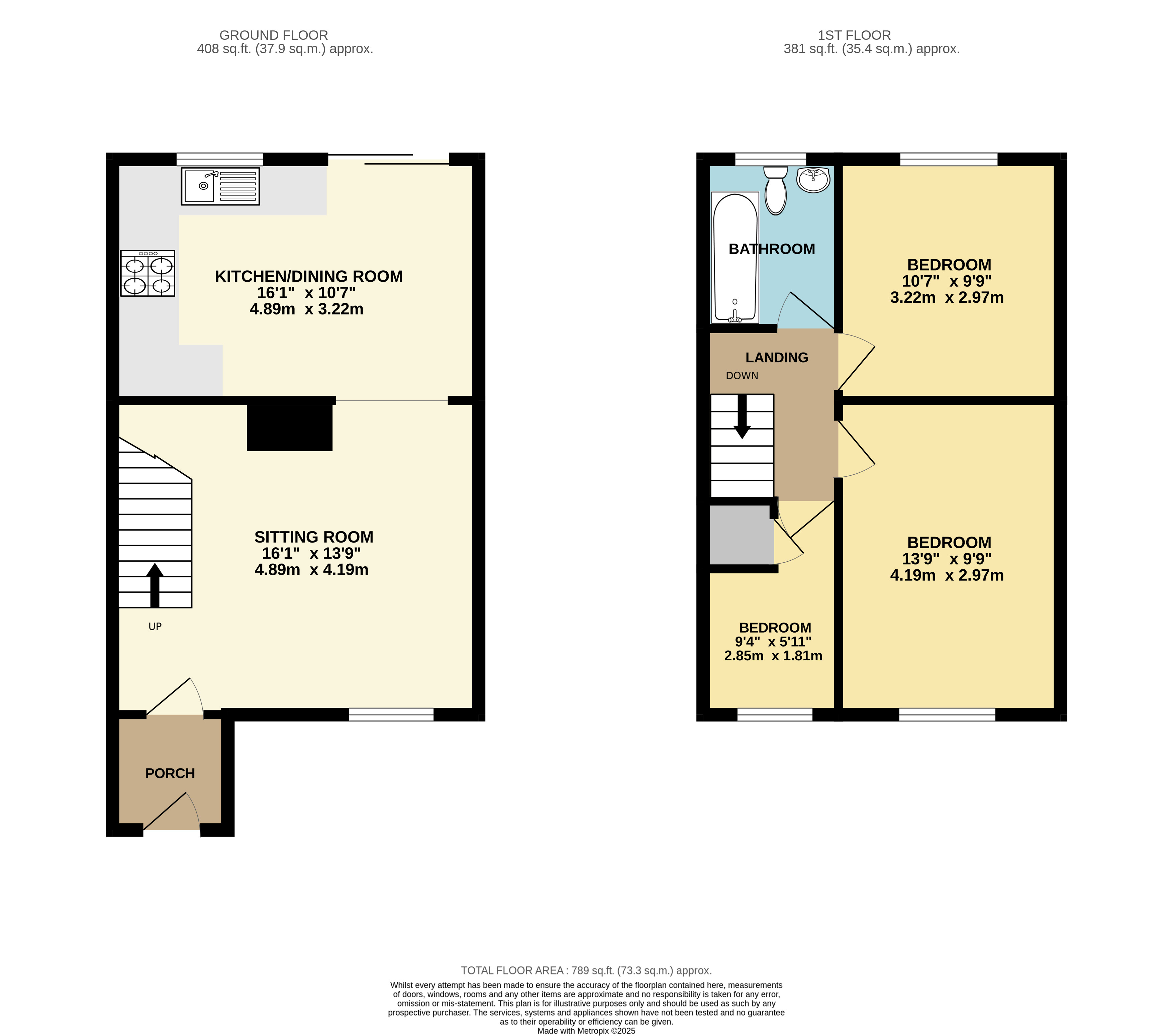 Bedroom 9'4"x5'11" (2.84mx1.8m).