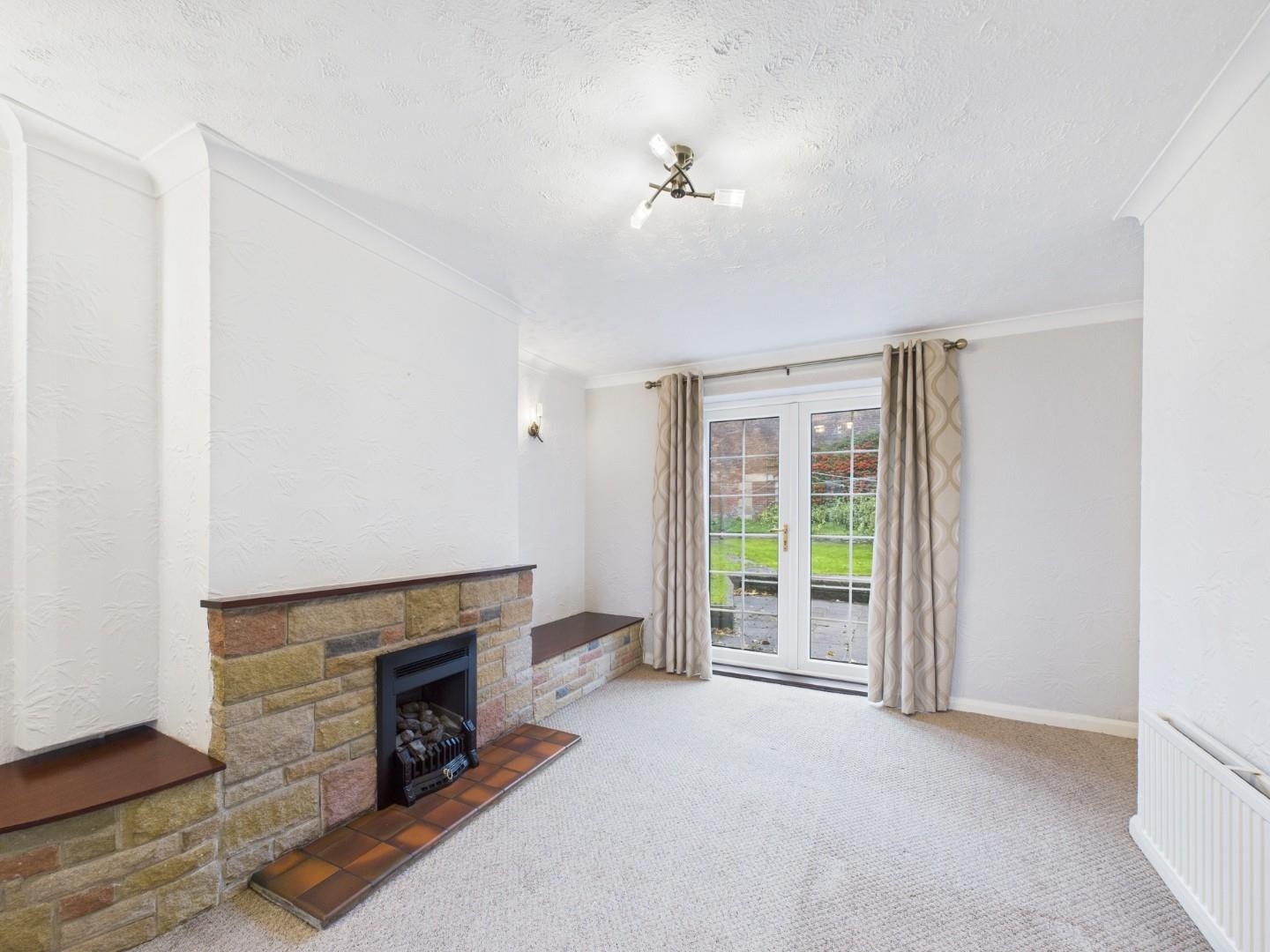 Dining Room - 3.71 x 2.97 (12'2" x 9'8") - This good-sized reception room enjoys a front-facing window that overlooks the surrounding neighbourhood. There's ample space for a dining table and chairs, making it ideal for entertaining or family meals. A decorative brick feature fireplace adds character to the room, while glazed sliding doors at the rear invite in additional natural light and open directly into the adjoining sitting room, enhancing the flow and versatility of the living space.