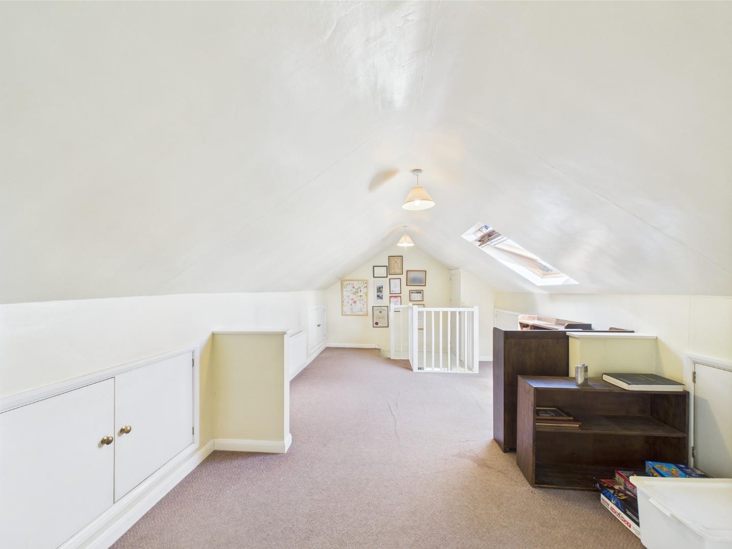 Loft Room - 3.13m x 9.07m (10'3" x 29'9") - A bright and spacious room with plenty of scope for storage. Two double-glazed Velux roof lights provide plenty of natural light. Built-in storage includes a large over-stairs cupboard and four under-eaves cupboards.