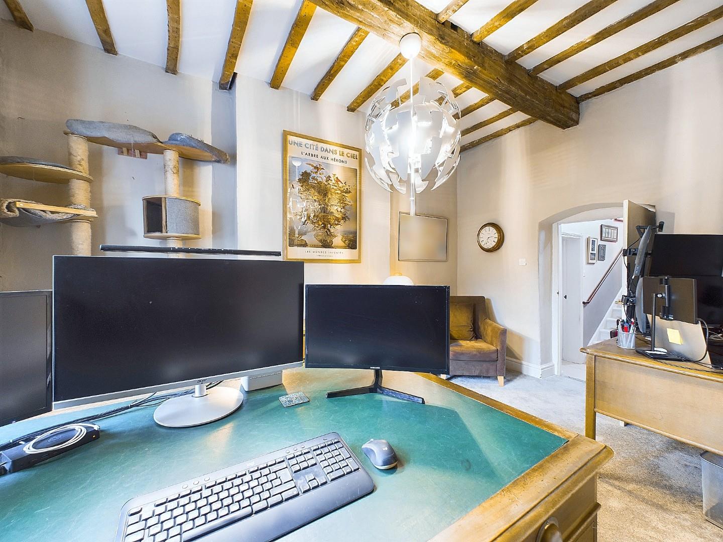 Ground Floor - On the ground floor are three spacious reception rooms which are currently used as follows: A generous sitting room is located to the right of the hallway and this features coving, ceiling rose and original window. A formal dining room is situated opposite the sitting room, again with original featuresbutalsohaving a substantial marble fireplace housing an open fire. The long hallway leads to a lovely room in the oldest part of the building, complete with exposed stone to one wall and exposed ceiling timbers. This room makes the perfect office, music room or family snug. To the rear of the home is a stunning kitchen. A red, gas fired Aga sits within a fireplace with brick surround and considerable stone lintel and the room is fitted with an extensive range of high qualityunits and integrated appliances. Plenty of naturallight floods in through the windows to the side which look out onto the garden towards the hillside beyond. Off the kitchen is a sizable utility room with guest WC and separate cloakroom and a side door opening onto Blind Lane.