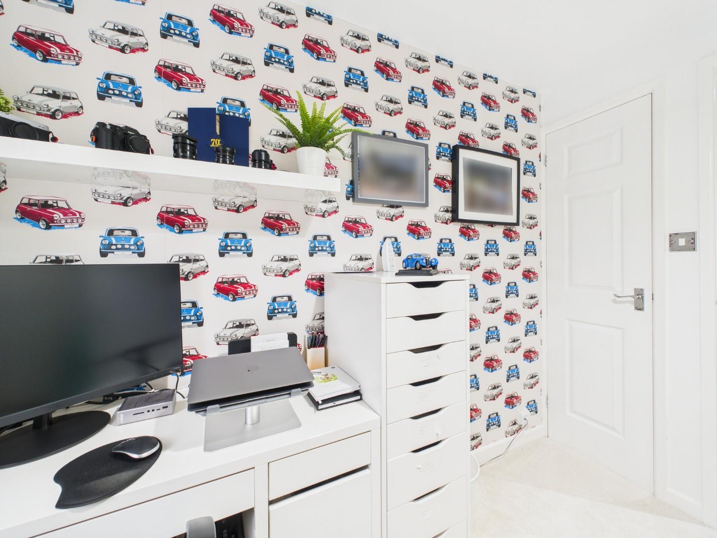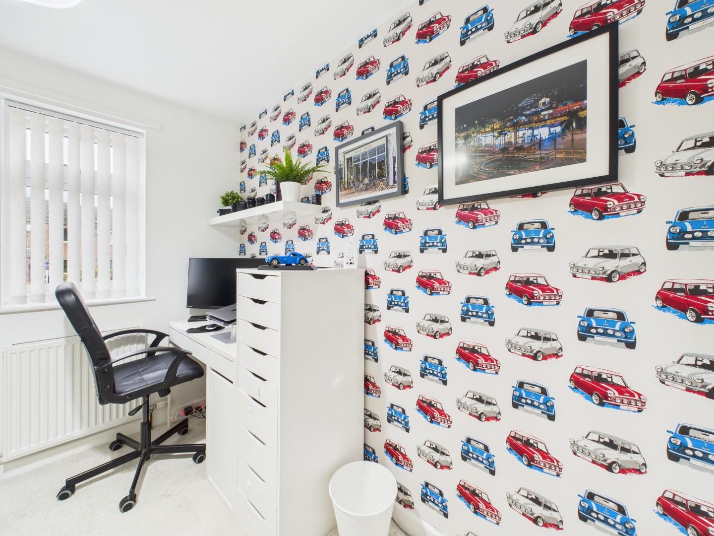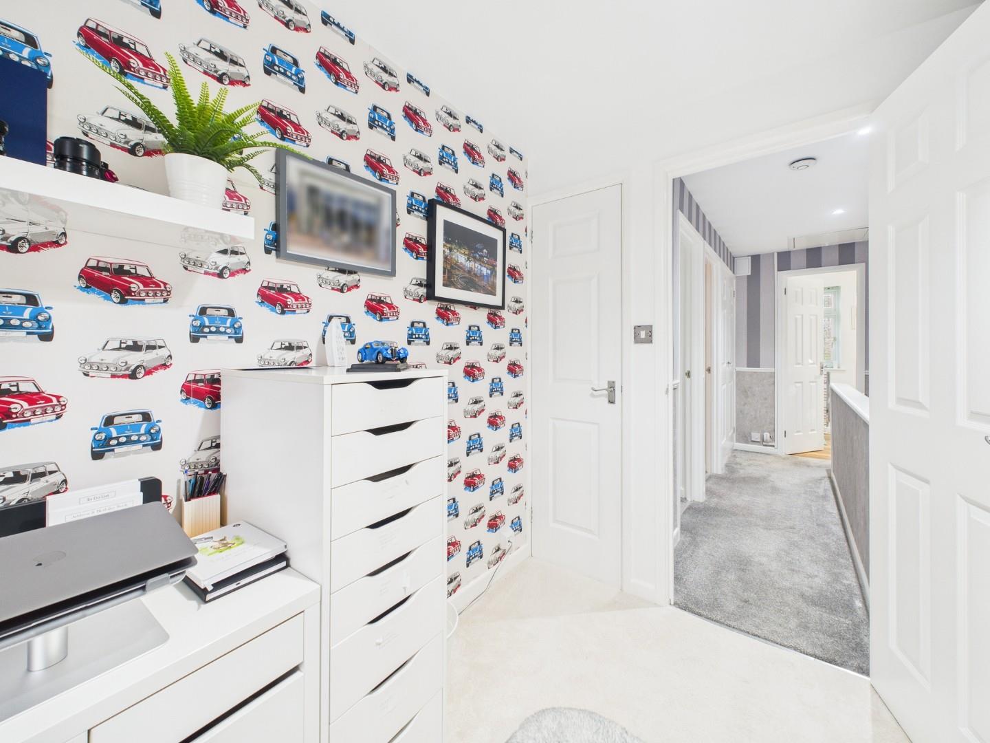 Bedroom Three - 2.66m x 2.39m (8'8" x 7'10") - Used by the current owner as a study this room would serve equally well as a bedroom. A door opens to a built in storage cupboard fitted with shelving. There is a window to the front aspect.