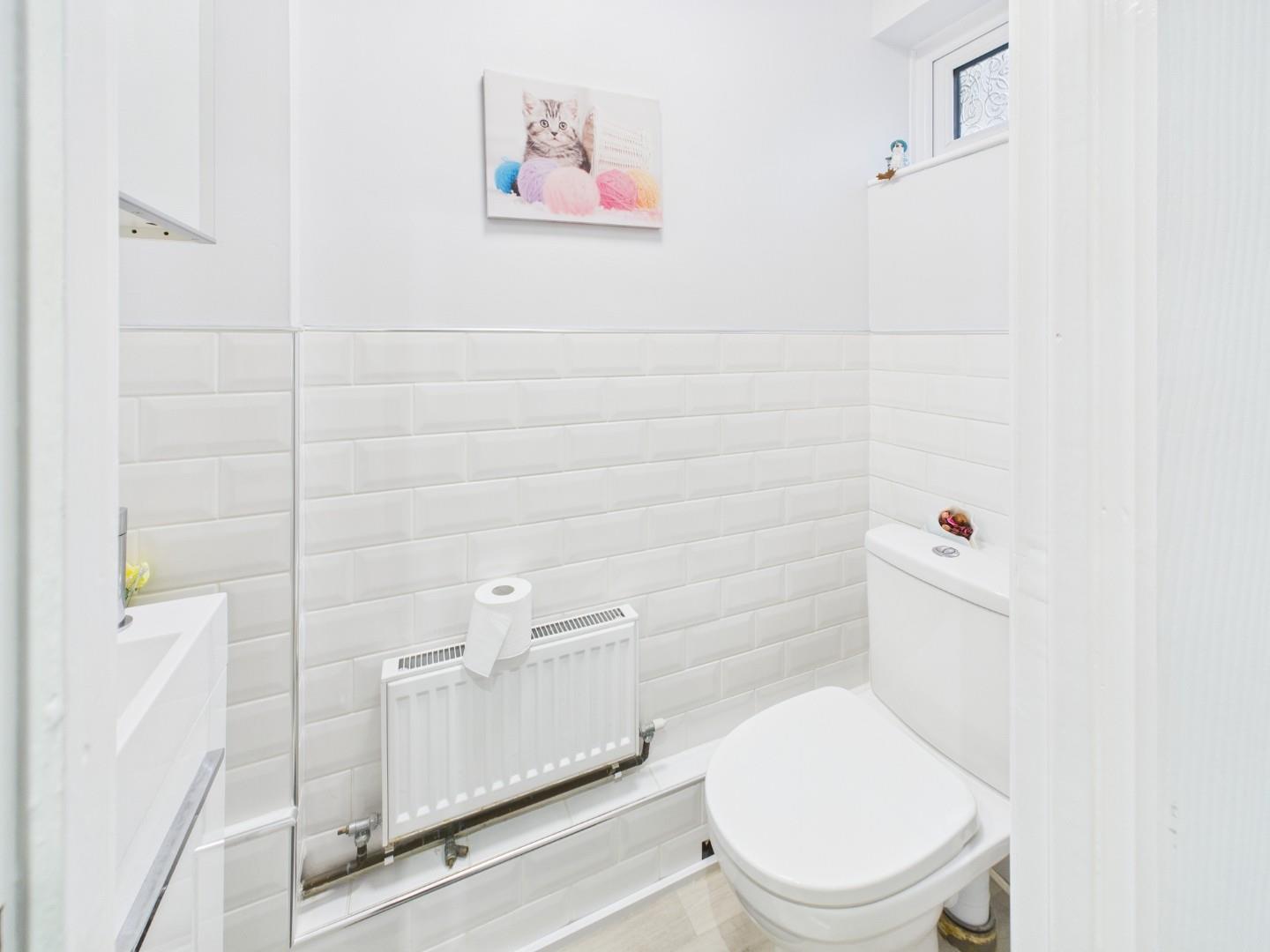 Downstairs Wc - 1.66m x 0.79m (5'5" x 2'7") - This part tiled room with vinyl flooring is fitted with a dual flush WC and a wash hand basin within a vanity unit. There is an opaque window to the front aspect.