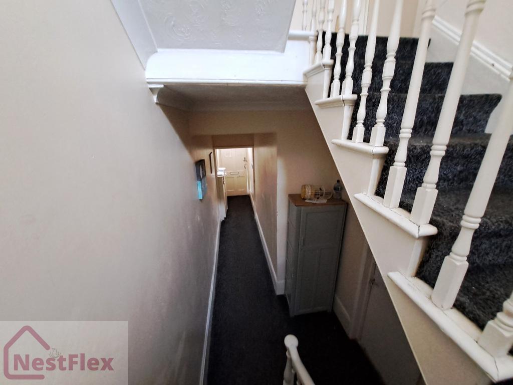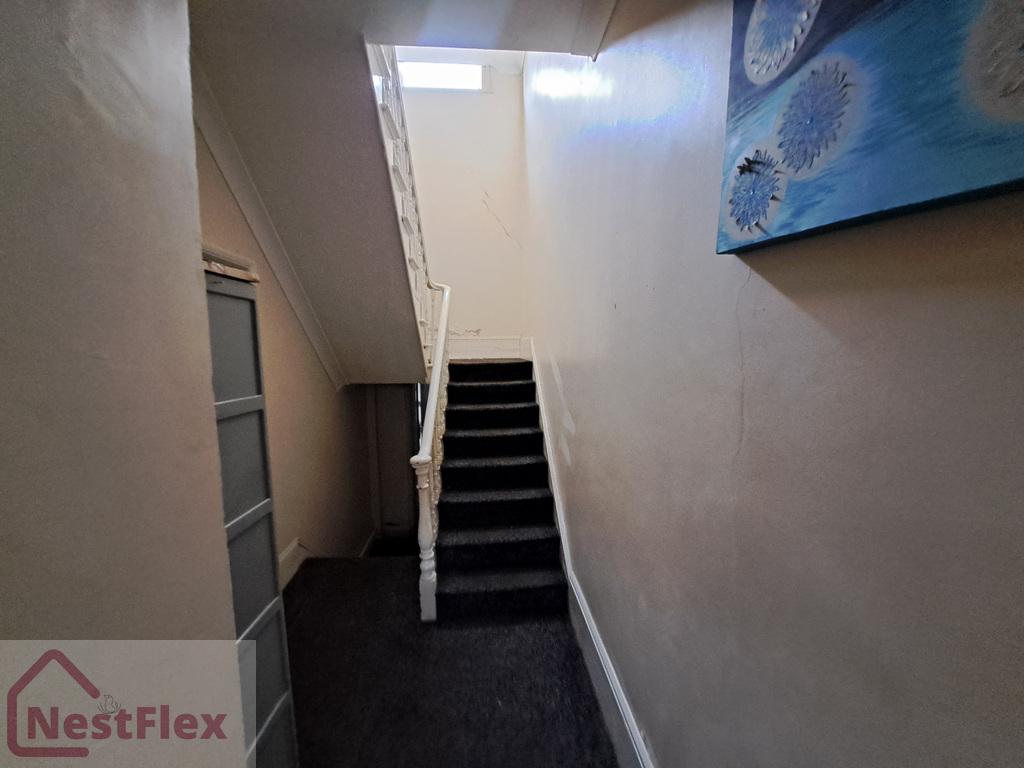 Access door to communal hallway - stairs up to top floor