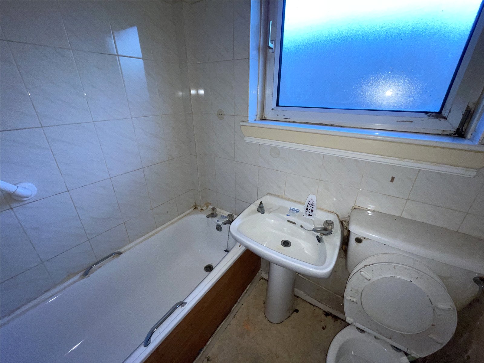 Upper 2 bedroom cottage flat in Wishaw, North Lanarkshire. This property comprises a sitting room, kitchen, bathroom and two bedrooms. This property benefits from its great location, on a bus route and close to amenities, but does require some TLC so would suit an investor.