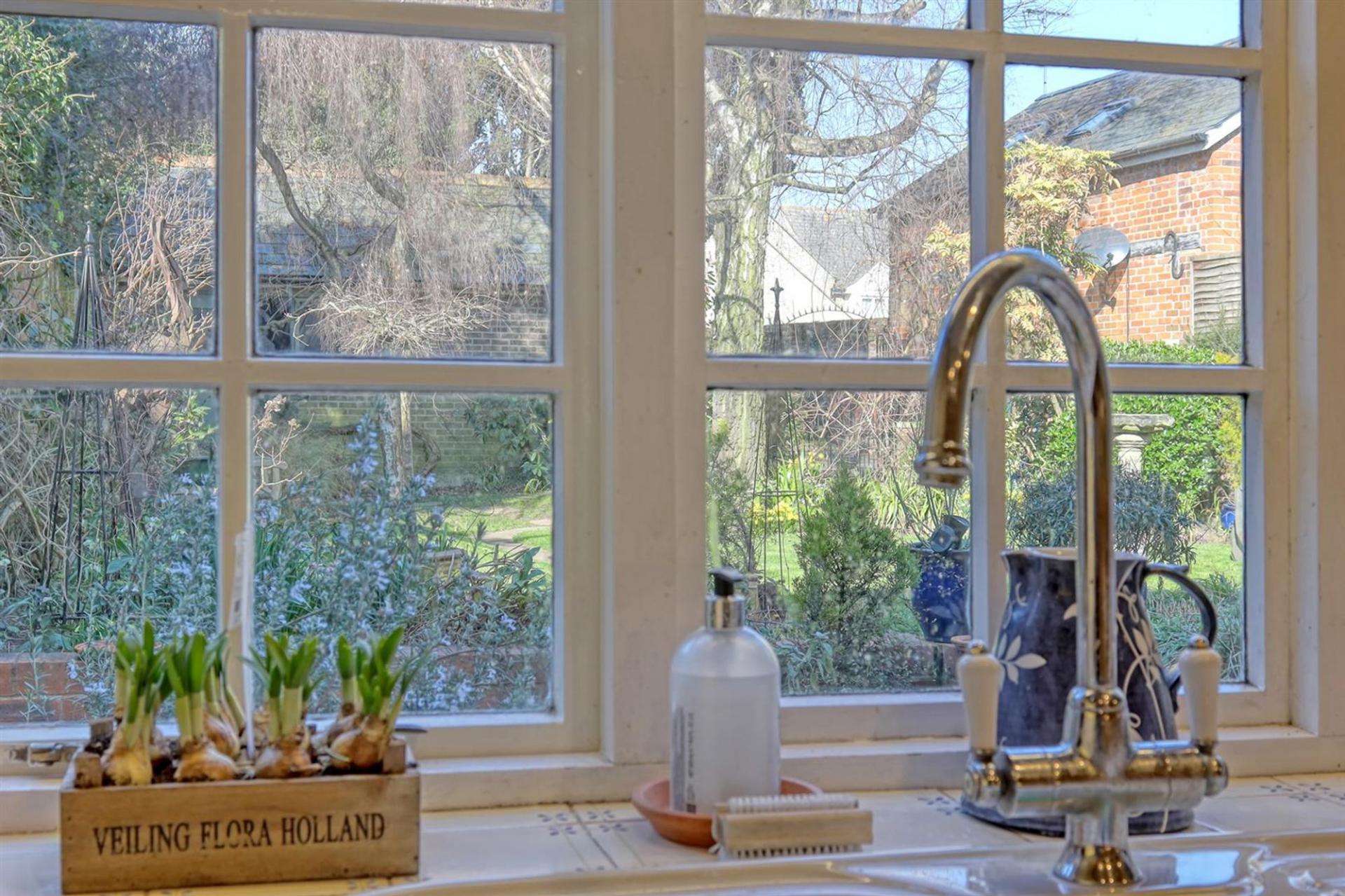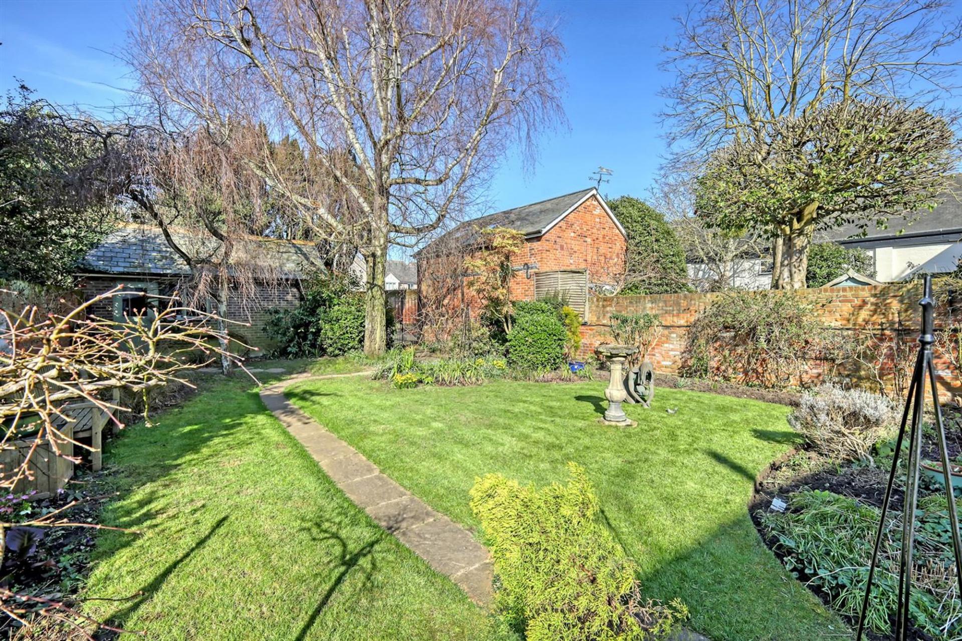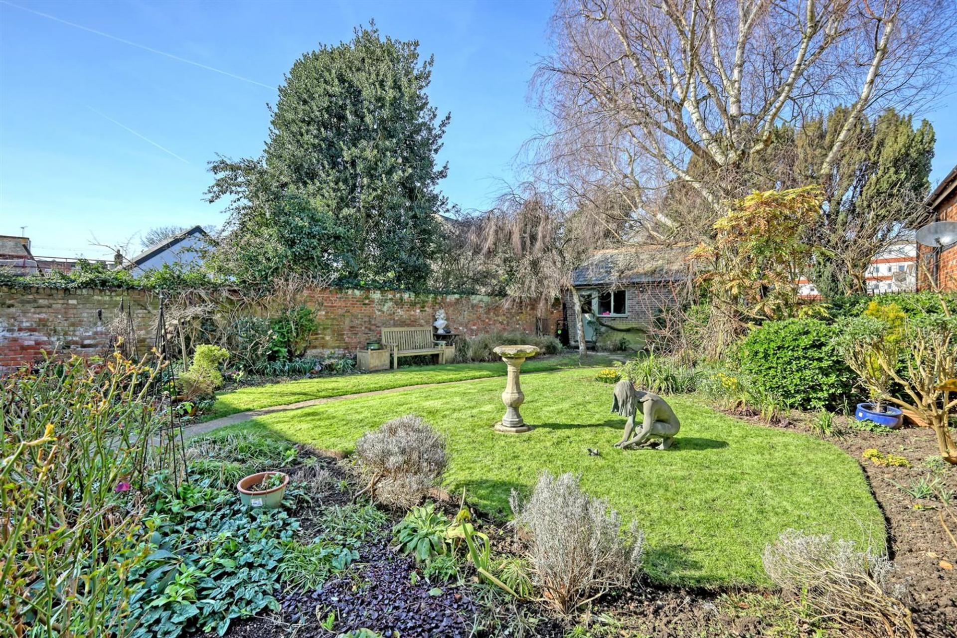 The property is set on a generous plot, with a private, part-walled cottage garden, described as ‘a picture in the summer’. Parking is ample, accommodating up to five vehicles, including a garage, accessed via a gated (shared) car park to the rear of the property.