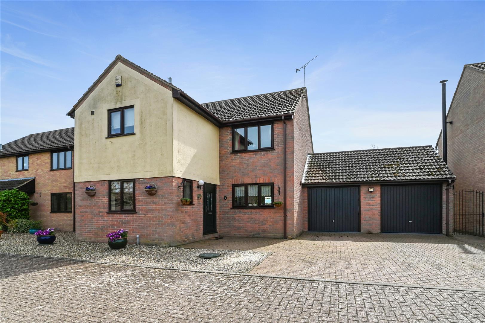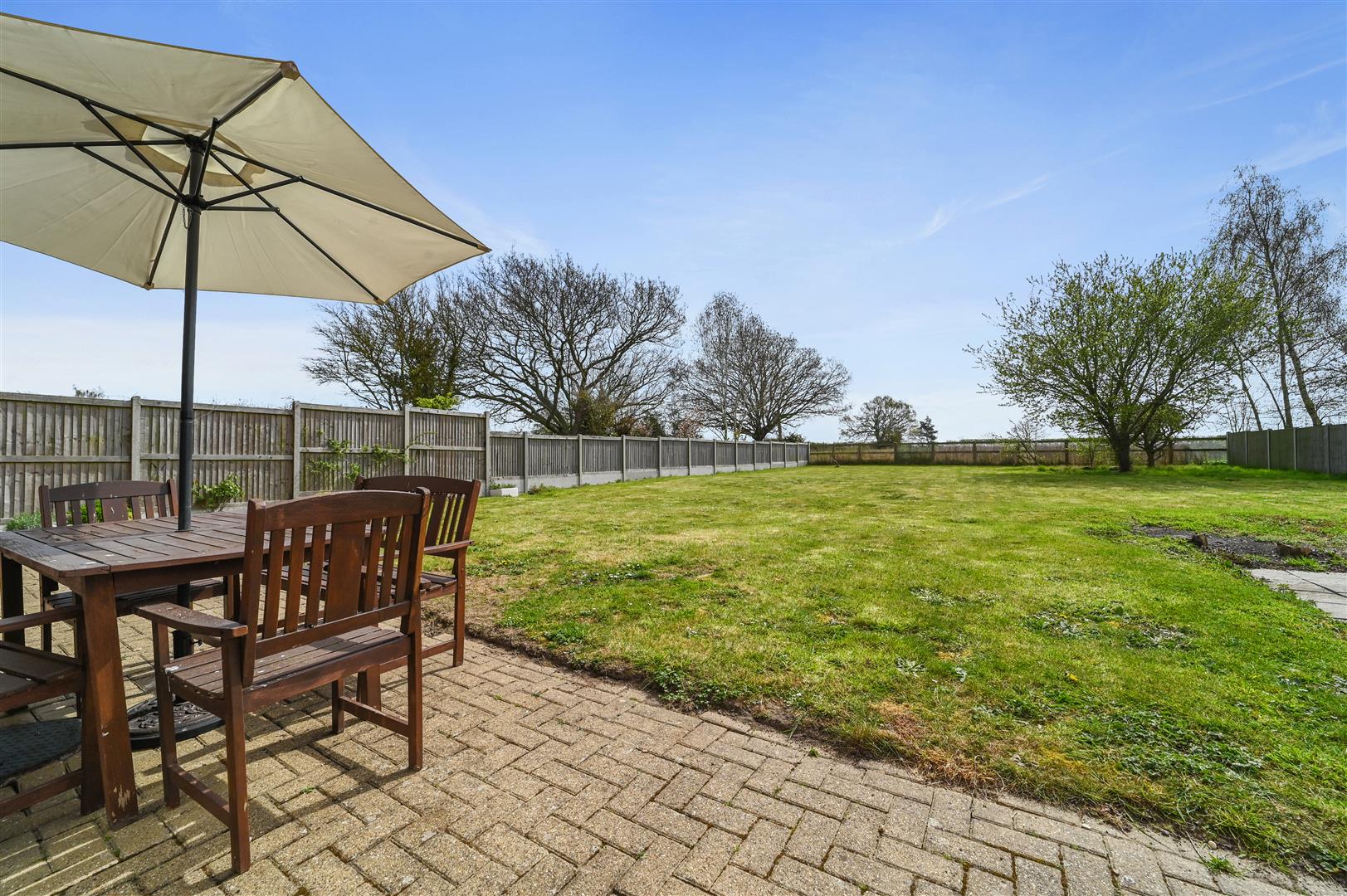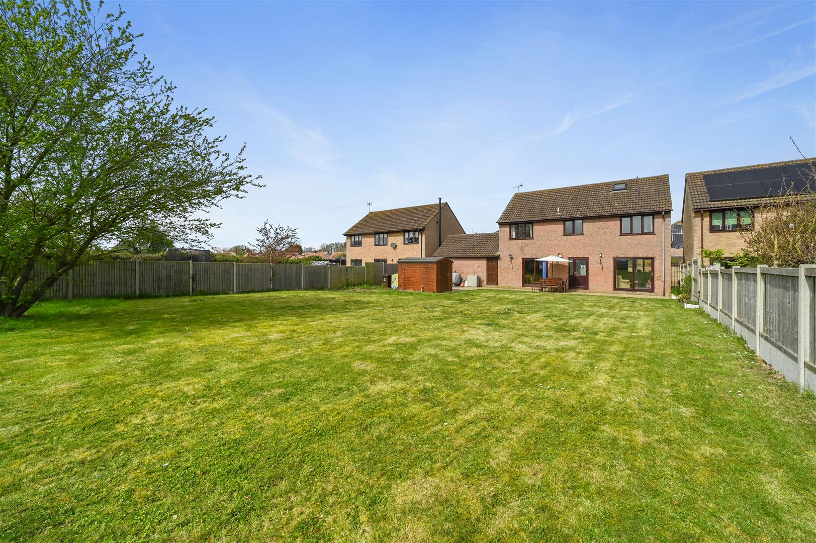 Outside, the enclosed rear garden offers a substantial lawn and uninterrupted rural views, perfect for children to play or summer gatherings. The property further benefits from a double garage and ample driveway parking to the front, ensuring practicality as well as comfort. This superb home truly delivers the best of family living in a desirable village setting.